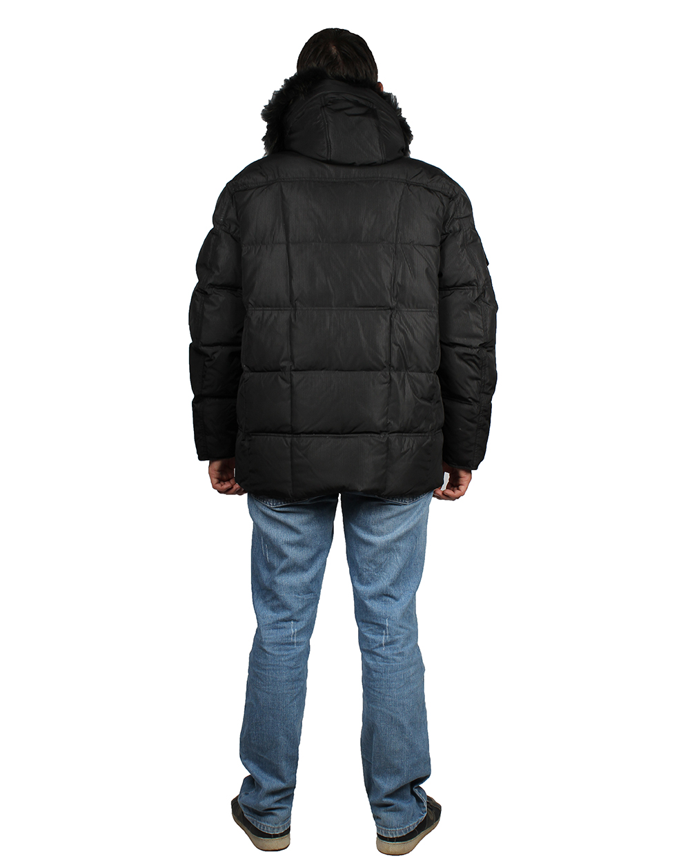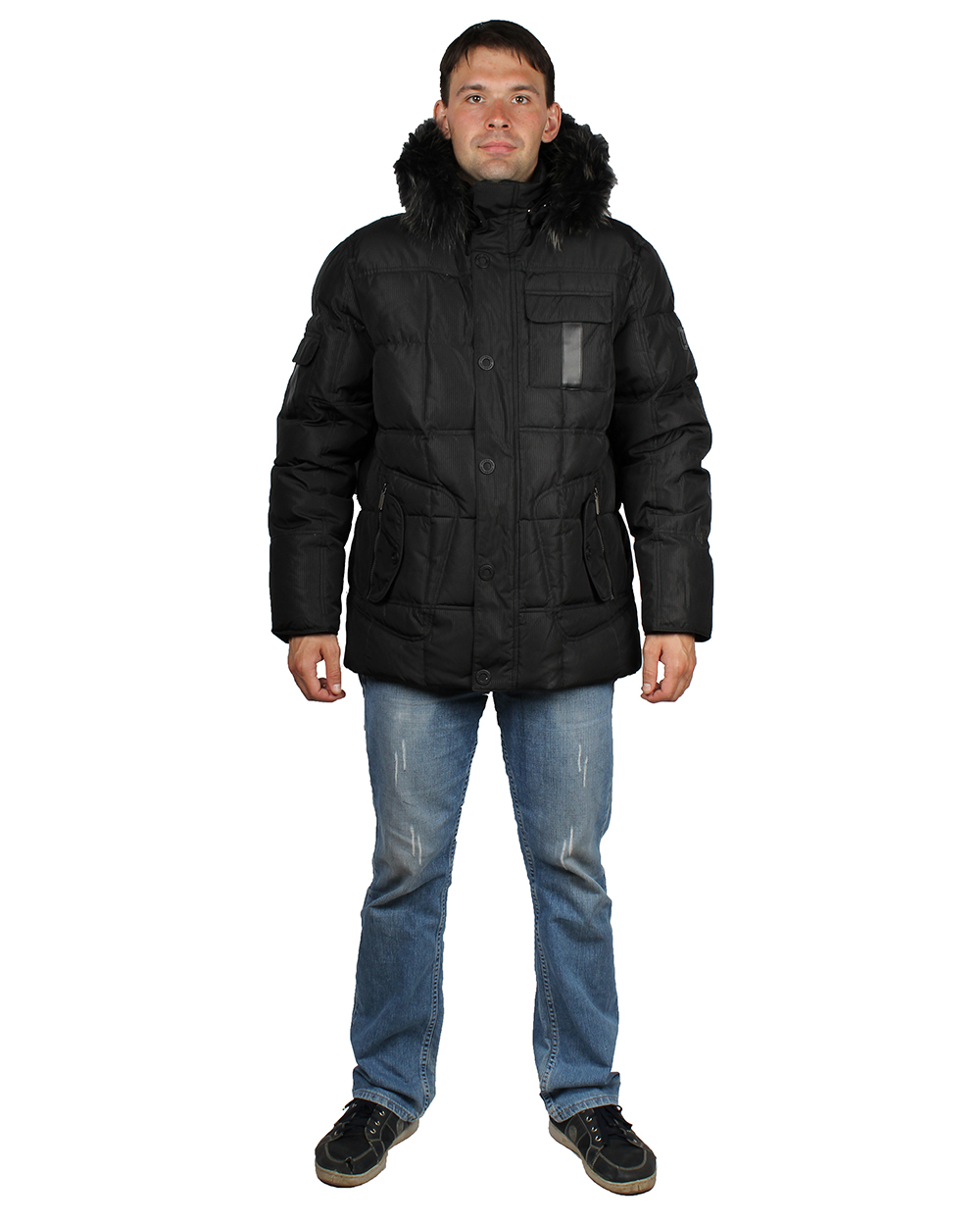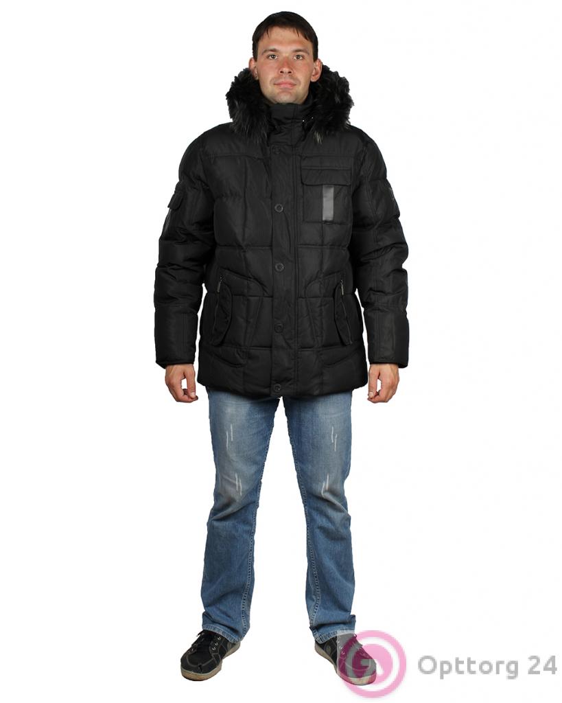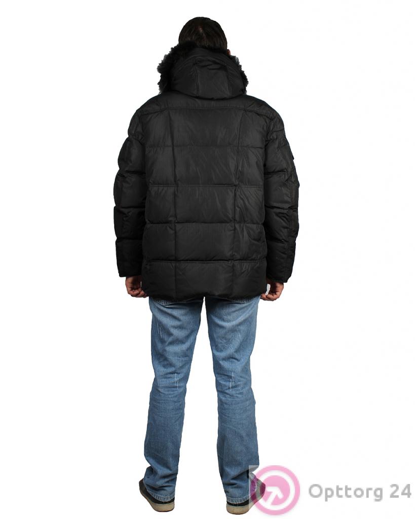 Пуховик мужской чёрный стёганный с натуральным мехом оптом