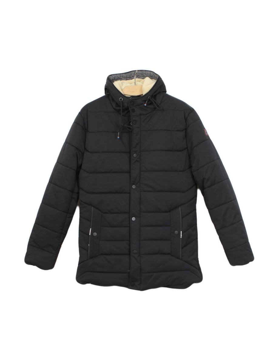 Зимний пуховик для мужчин. Очень теплая и практичная модель. Спереди 2 кармана и молния. Капюшон и половина спинки оторочены мехом овчины.
