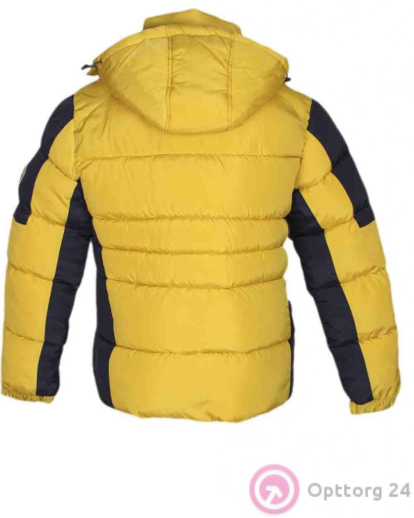 Теплый мужской пуховик с капюшоном. Капюшон отстёгивается. Модель имеет два боковых и один нагрудный карман на молнии. Рукава с манжетами на липучках. Застёгивается пуховик на молнию, которая прикрыта ветрозащитной планкой.