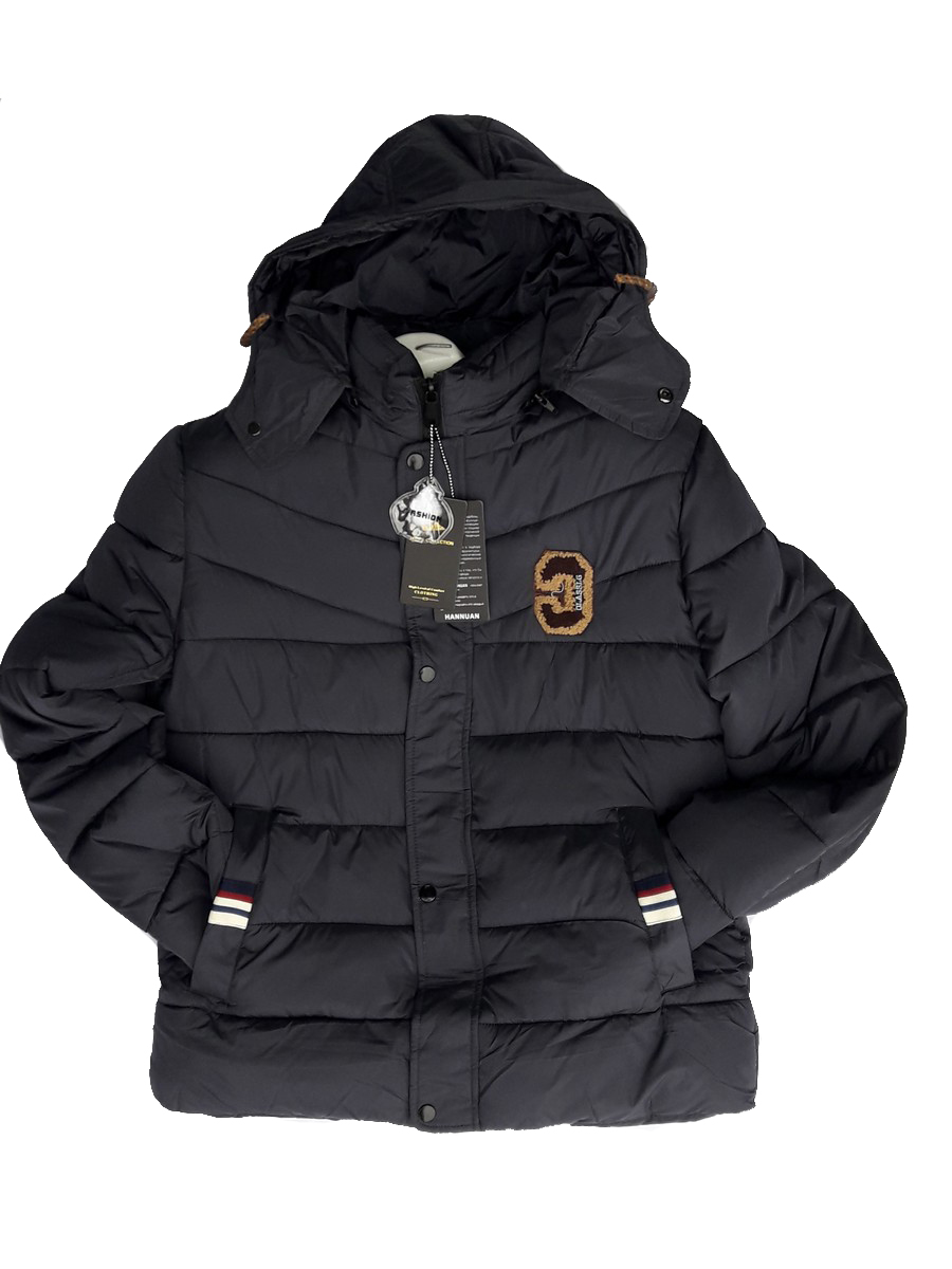 Зимний мужской пуховик на холлофайбере черного цвета с капюшоном. По бокам карманы. Стиль современный.