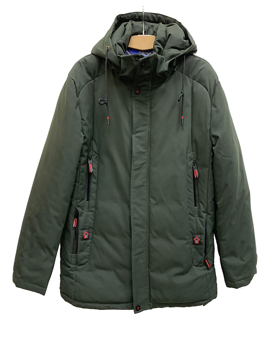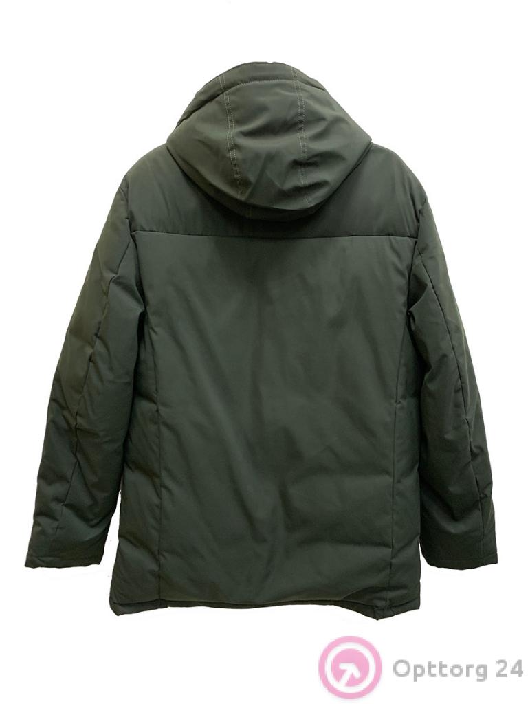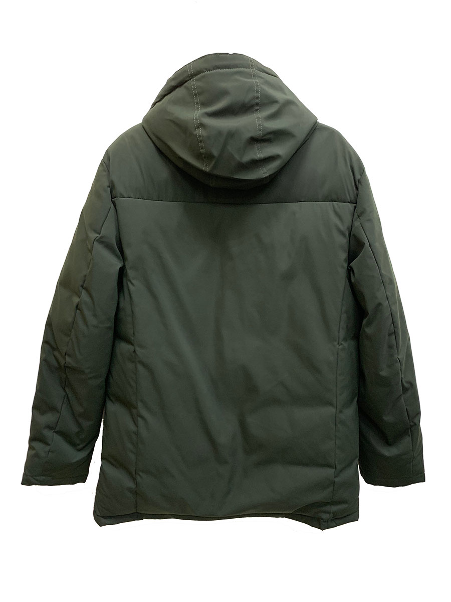Описание: Пуховик зимний мужской на синтепоне прямого кроя, темно-зеленого цвета. Эта модель будет отлично со читаться с любым видом одежды и отлично защитит от холода. Пуховик выполнен с высоким воротником и ветрозащитной планкой на кнопках. Застежка с двухсторонней молнией. У пуховика есть капюшон со шнуровкой, а так же есть два нагрудных кармана на молнии и по бокам два кармана так же на молнии.