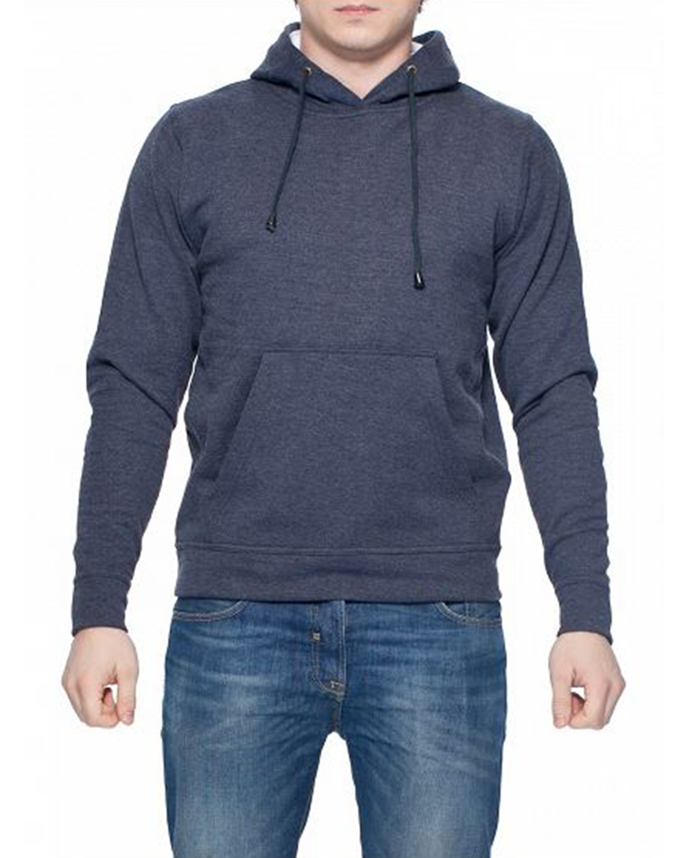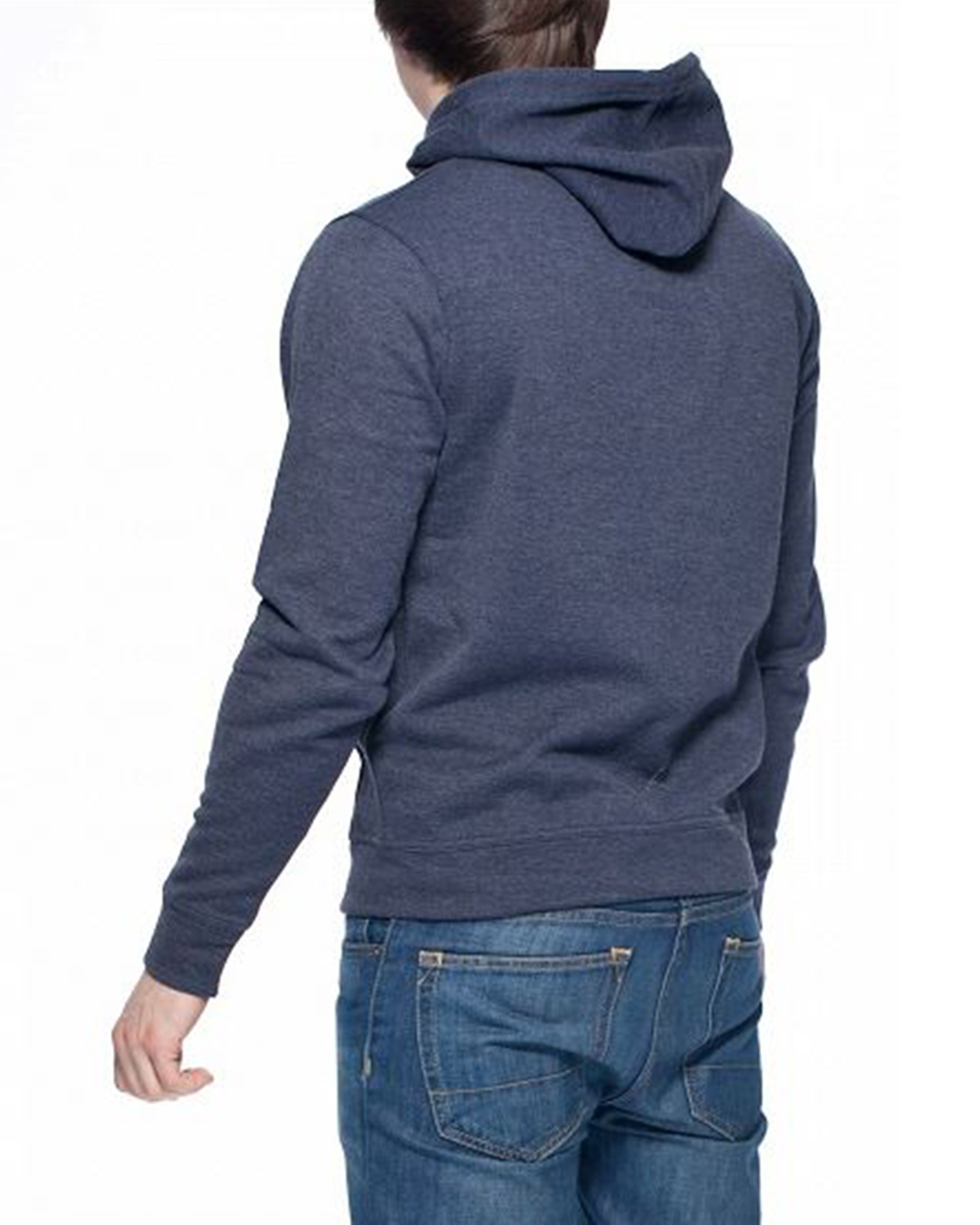 Стильная мужская кофта с капюшоном (худи) меланжевого синего цвета. Модель выполнена из хлопка, декорирована карманами. Капюшон на завязках. Кофта очень комфортная, прекрасно подойдет тем, кто любит сочетать спортивный и городской стили.