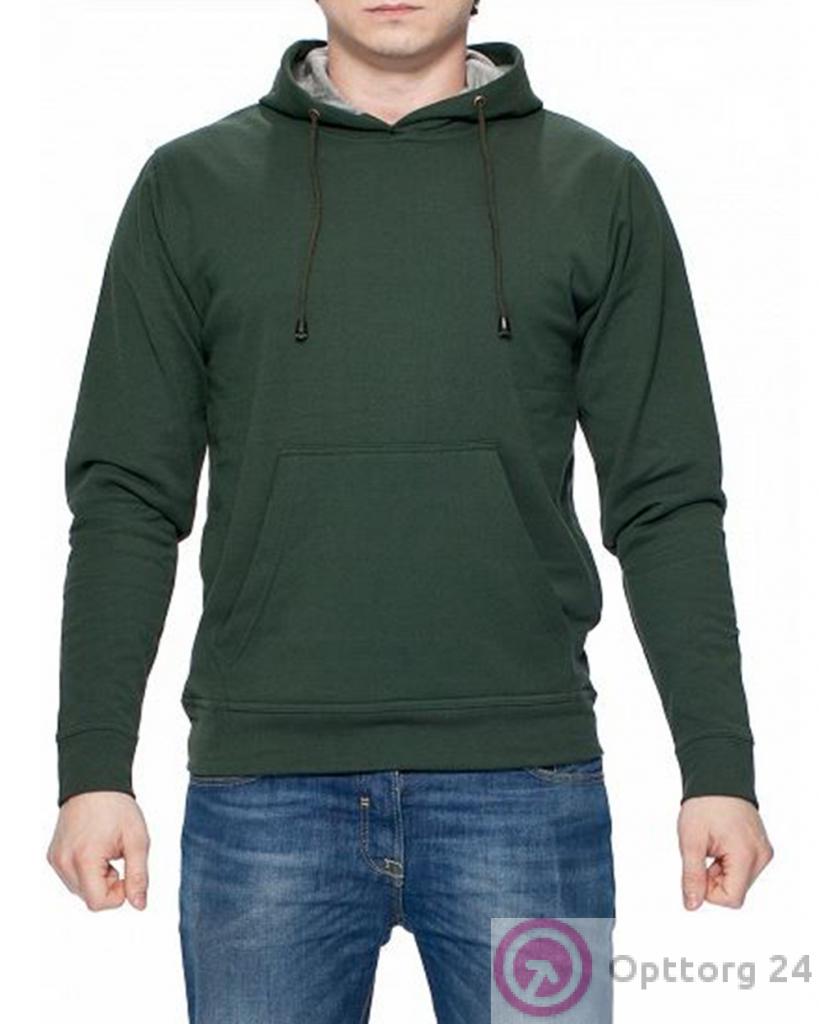 Мужская кофта с капюшоном (худи) зеленого цвета. Модель выполнена из хлопка, декорирована карманами. Капюшон на завязках. Кофта очень комфортная, прекрасно подойдет тем, кто любит сочетать спортивный и городской стили.