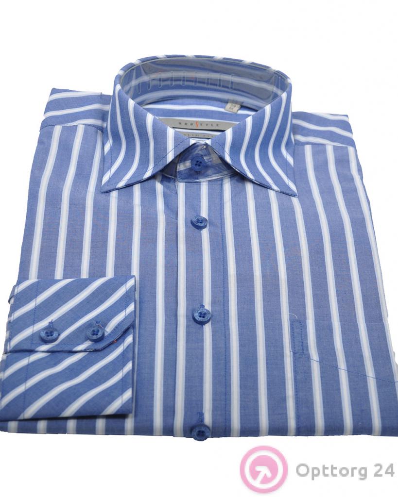 Рубашка мужская д.р. голубая в белую полоску оптом