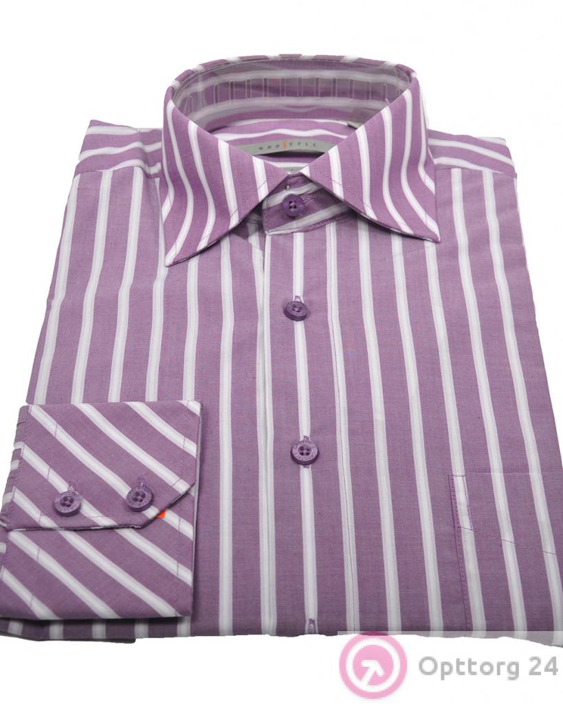 Рубашка мужская д.р. сиреневая в крупную полоску оптом