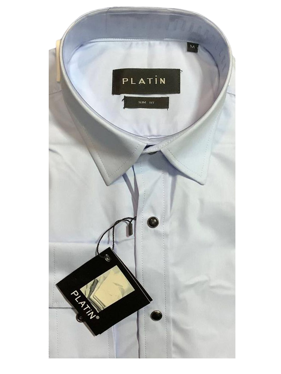 Описание: Рубашка мужская классическая приталенная Platin с длинным рукавом, цвет белый с легким голубым оттенком, стильный дизайн с карманом, застегивается на кнопки.