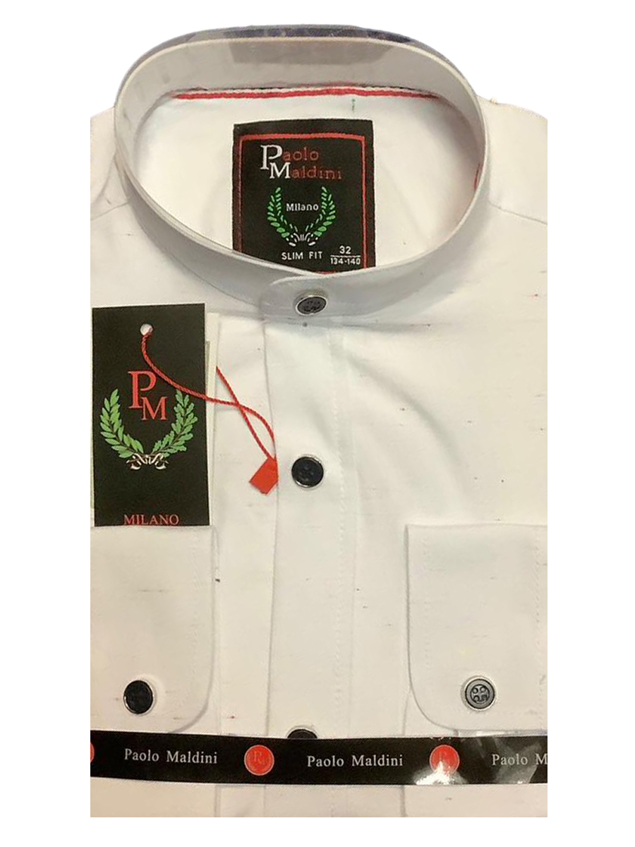 Описание: Рубашка мужская классическая приталенная Paolo Maldini с длинным рукавом, модный, современный дизайн, воротник стойка, цвет молочно-белый, карманы с клапанами, на кнопках.