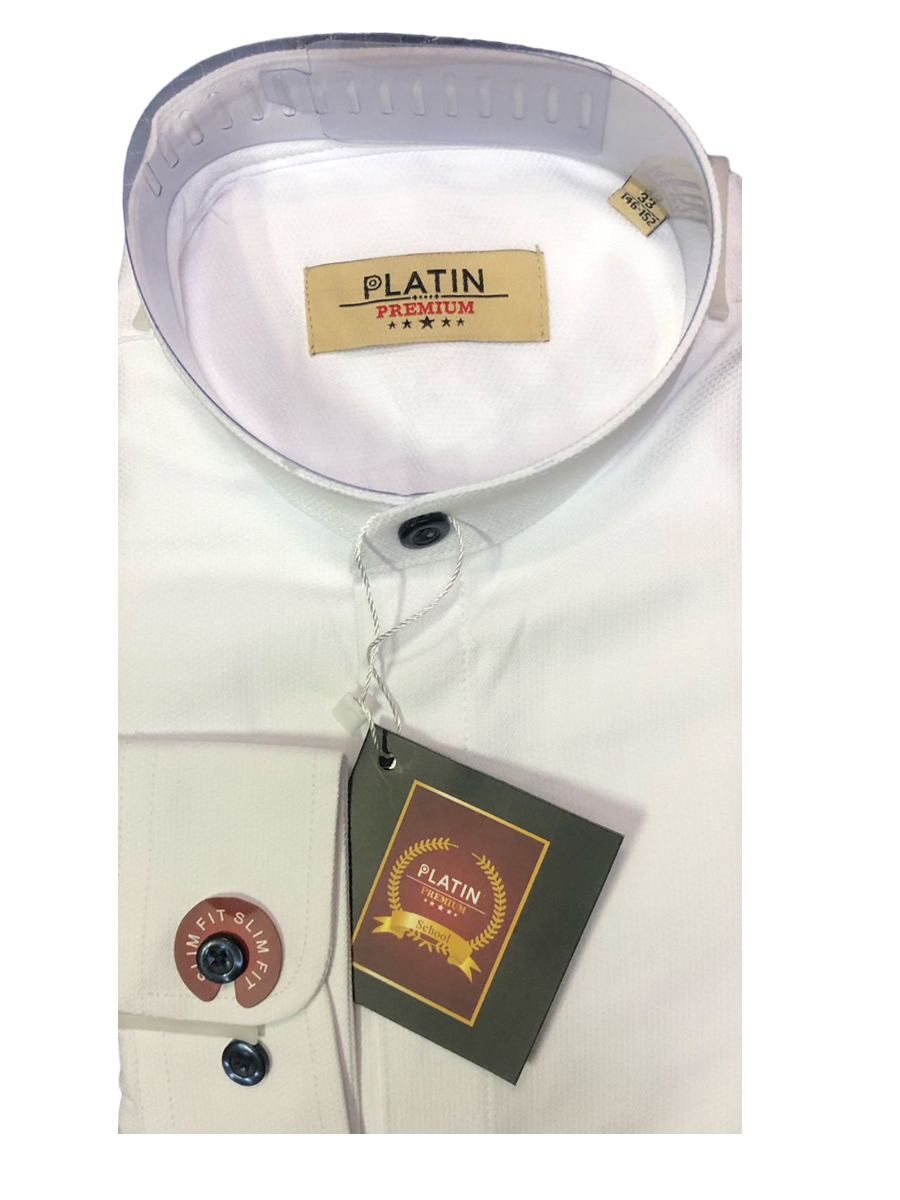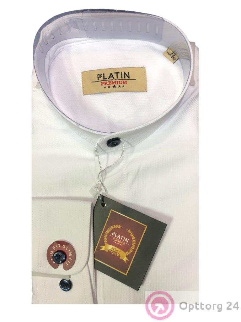 Рубашка мужская классическая Platin, белоснежная, идеально подойдет к костюму, на праздник, свадьбу и деловые визиты, воротник стойка, приталенная, с длинным рукавом, черные кнопки.