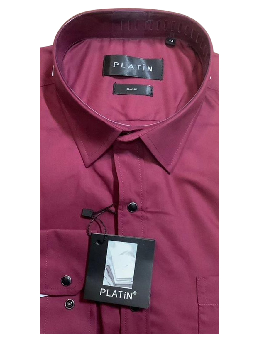 Описание: Рубашка мужская классическая прямая Platin с длинным рукавом, сочного бордового цвета, застежка на кнопках, отделана накладными карманами.