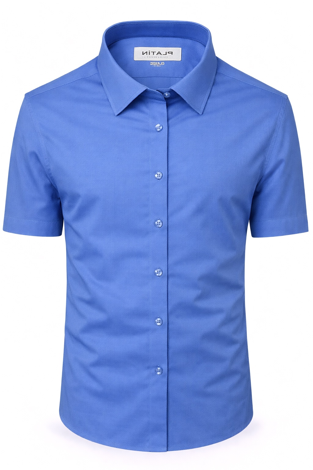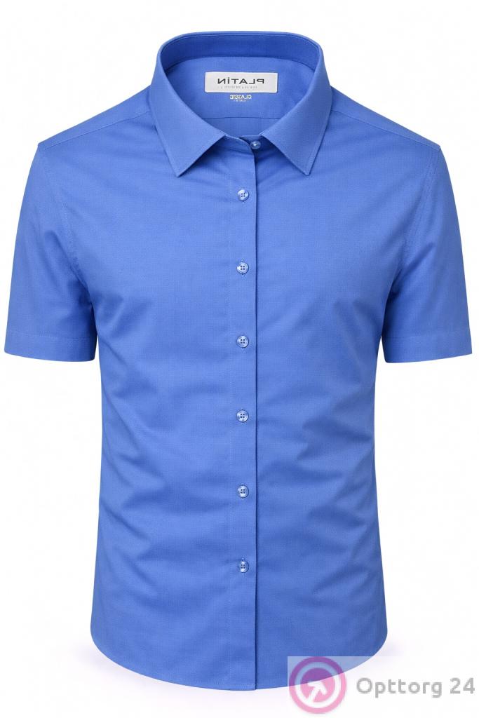 Описание: Рубашка мужская классическая прямого кроя из хлопка Platin с коротким рукавом, голубого цвета, на пуговицах.