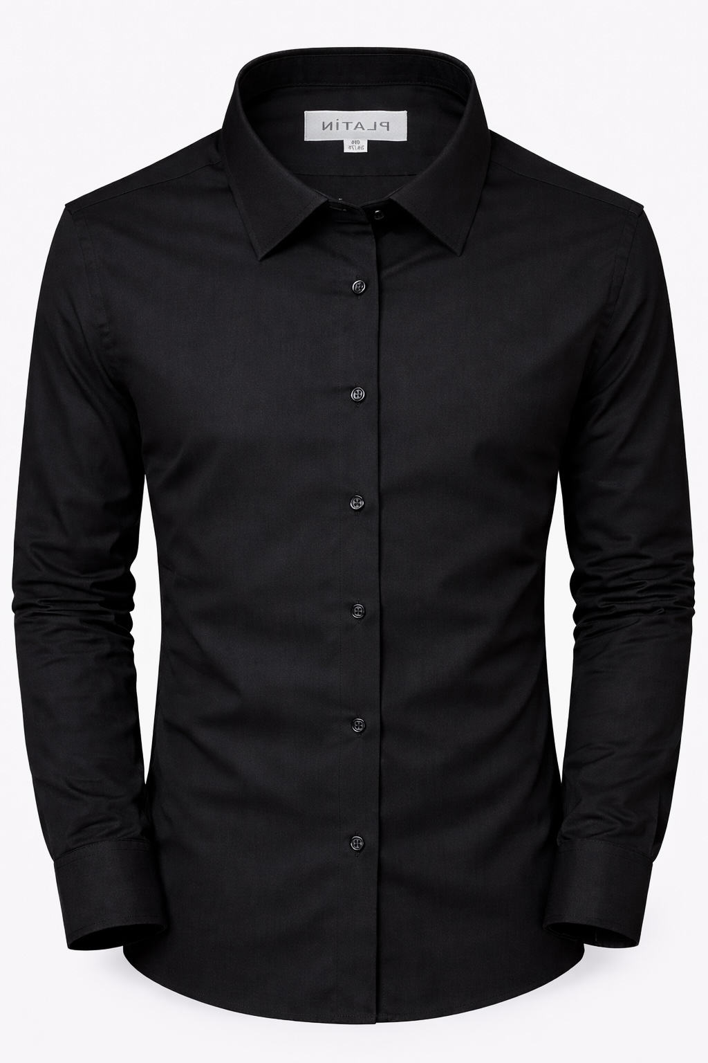 Описание: Рубашка мужская классическая прямого кроя из хлопка Platin с коротким рукавом, однотонного черного цвета, на пуговицах.