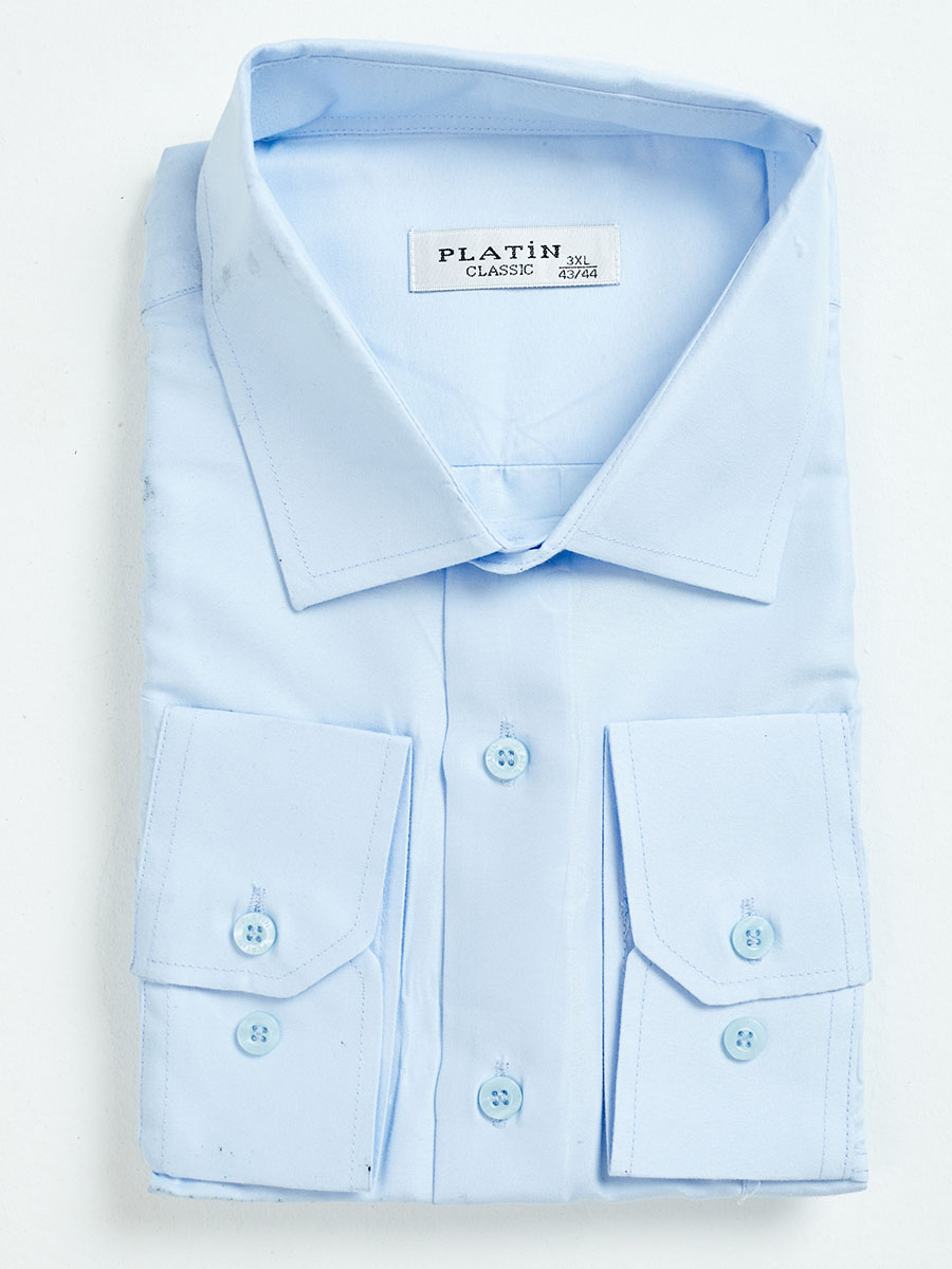 Описание: Рубашка мужская классическая прямого кроя из хлопка Platin с длинным рукавом, голубого цвета. Застежка на ряде пуговиц.