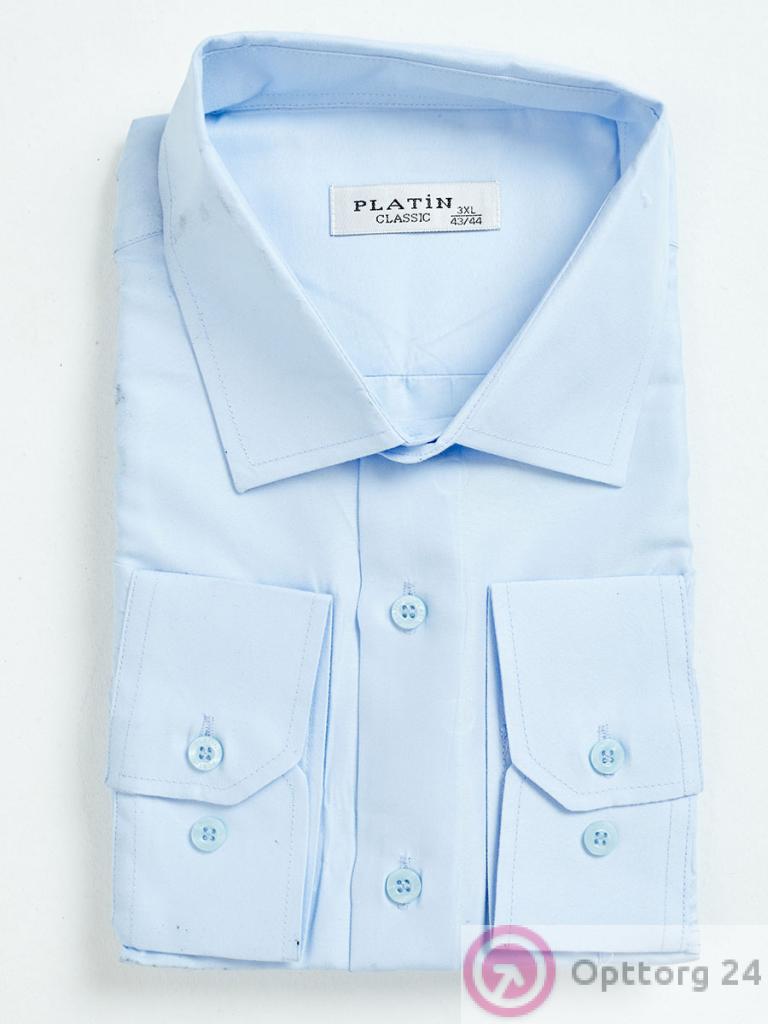 Рубашка мужская классическая прямого кроя из хлопка Platin цвет голубой оптом