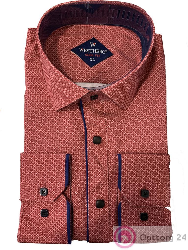Рубашка мужская с длинным рукавом из хлопка приталенная оригинального цвета оптом