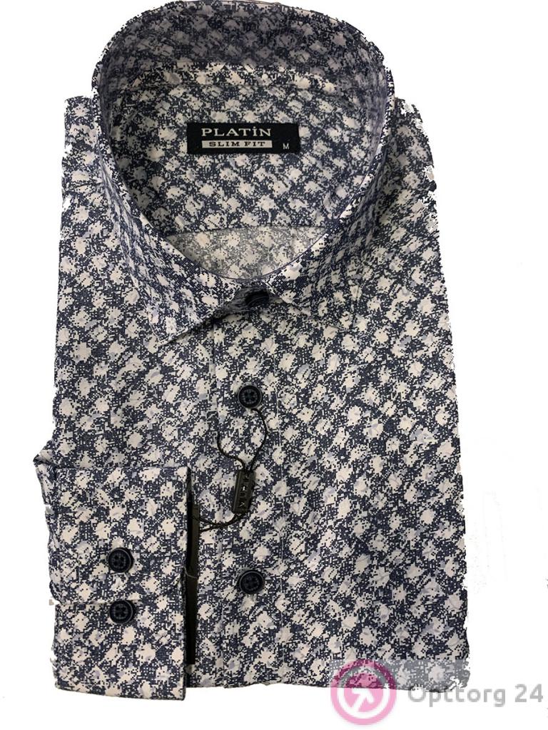 Рубашка мужская с длинным рукавом из хлопка приталенная оригинальной расцветки оптом
