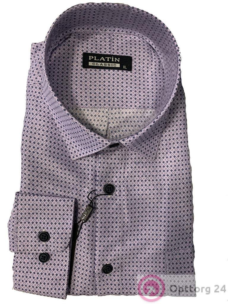 Рубашка мужская с длинным рукавом из хлопка прямого кроя сиреневого цвета оптом