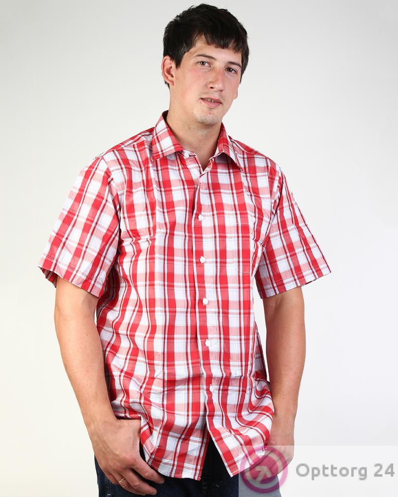 Рубашка мужская с коротким рукавом в красно-белую клетку оптом