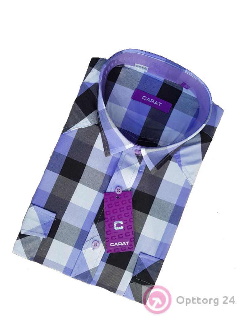 Рубашка мужская с коротким рукавом в крупную клетку с голубыми тонами оптом