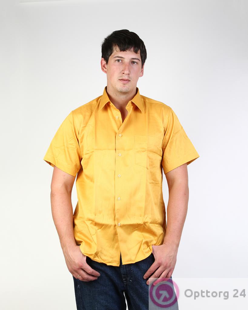 Рубашка мужская с коротким рукавом желтая простого кроя оптом