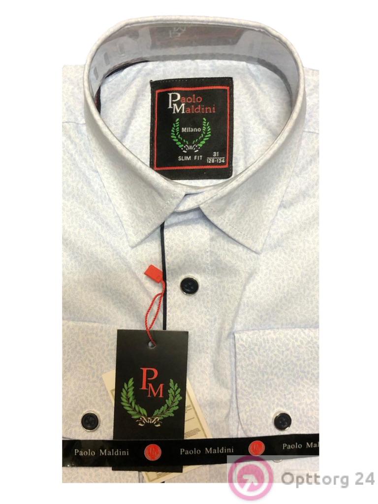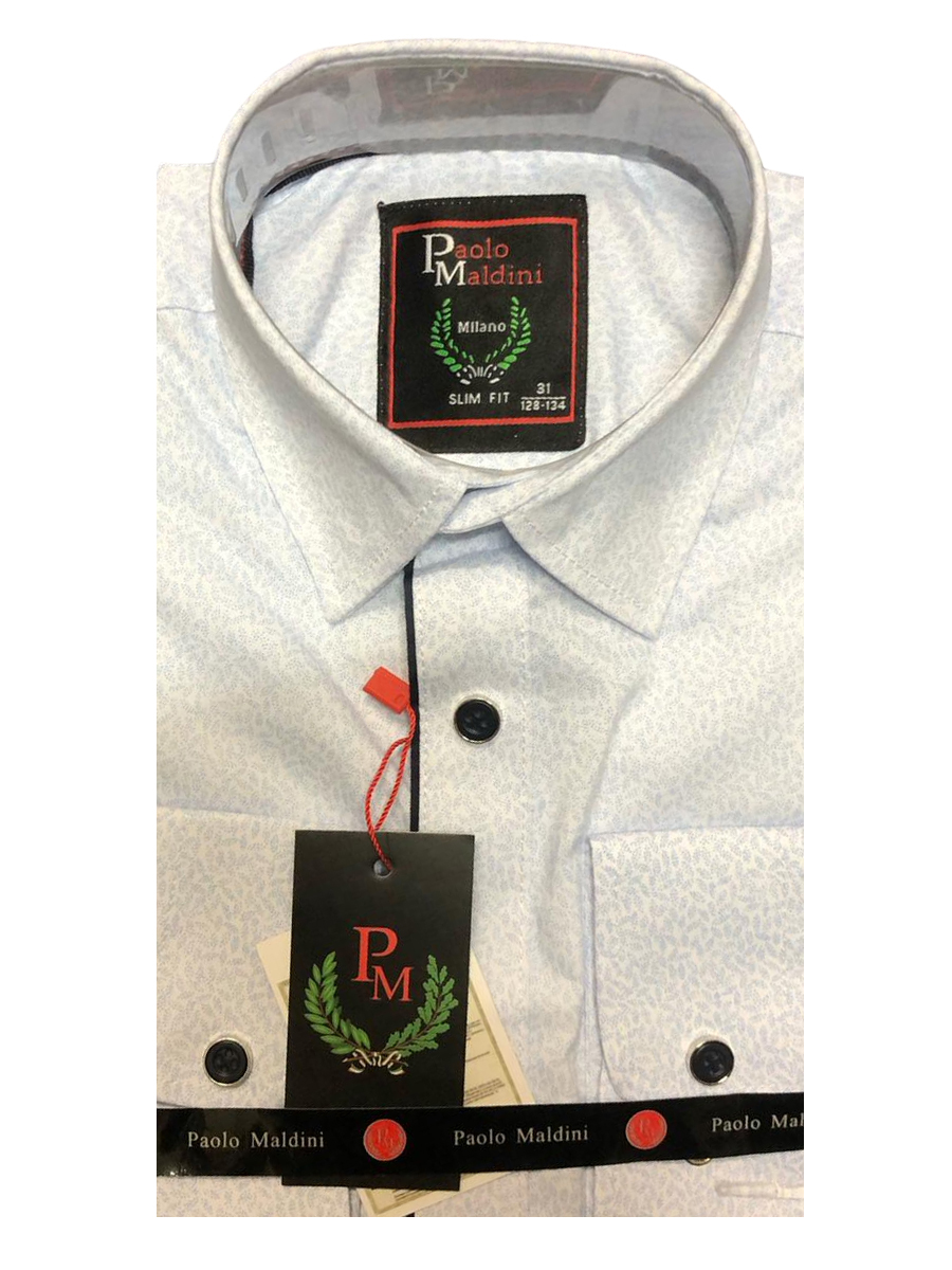 Описание: Рубашка мужская классическая приталенная Paolo Maldini с длинным рукавом, современный дизайн с оригинальным рисунком, основной цвет белый, с двумя карманами, застежка на кнопках.