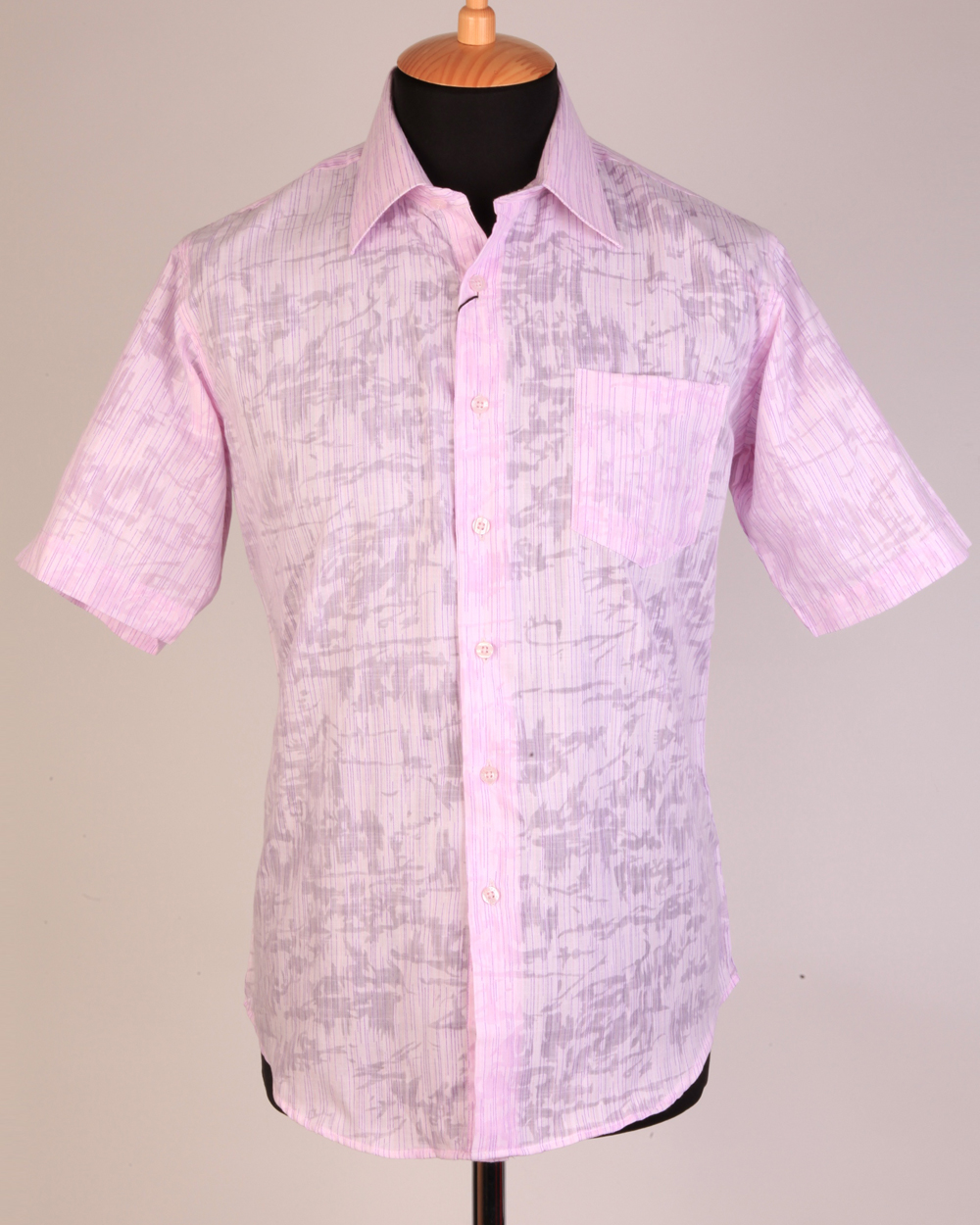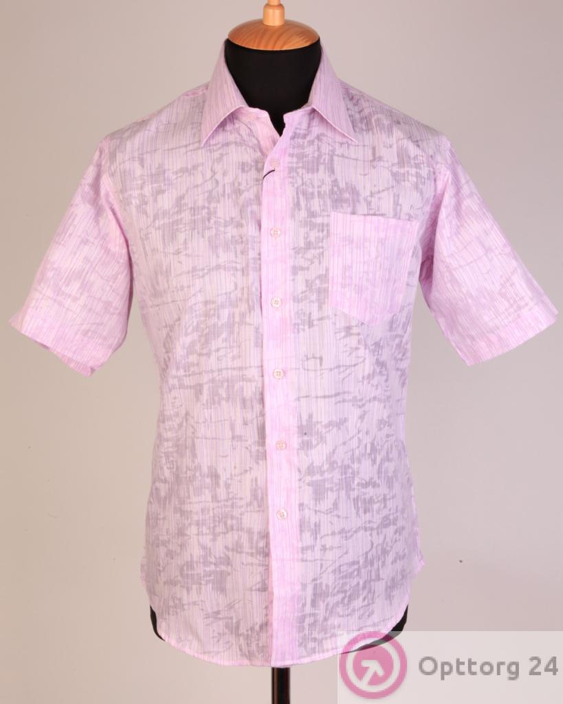 Рубашка мужская светло-розовая в полоску, с узором оптом