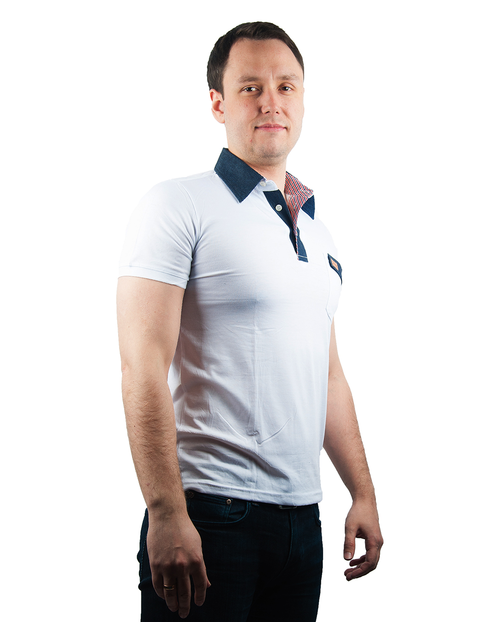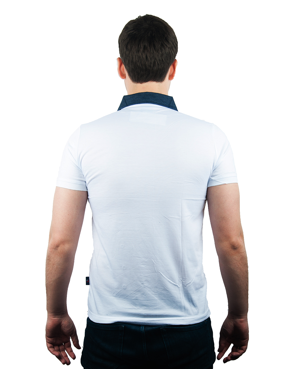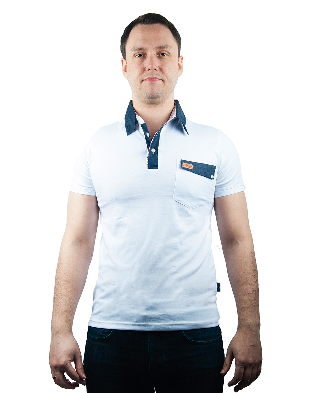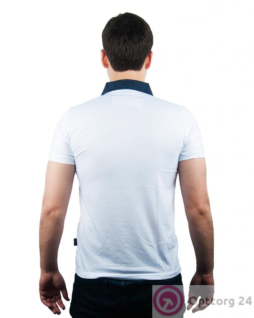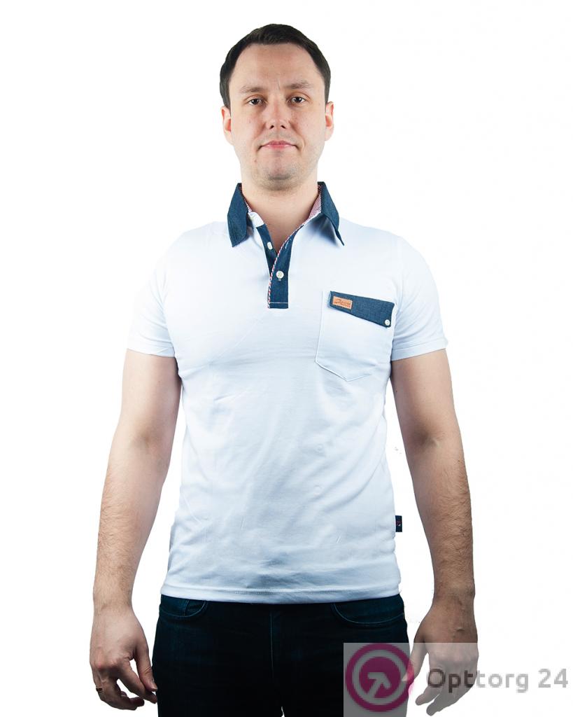 Рубашка-поло белая с вставками под джинсу оптом
