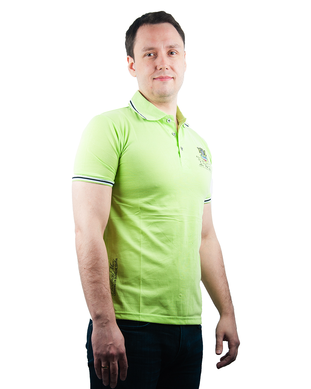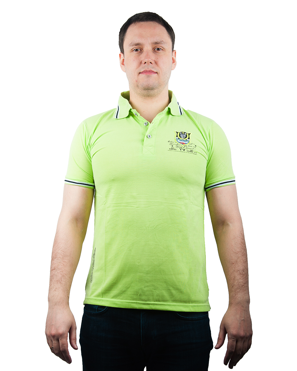 Рубашка-поло мужская с коротким рукавом салатового цвета оптом