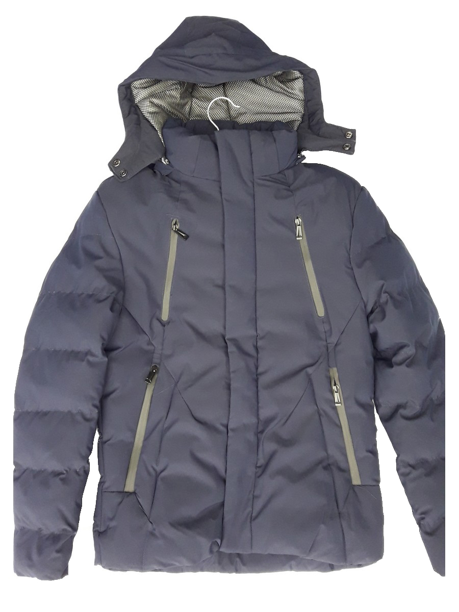 Пуховик на зиму для мужчин серого цвета, капюшон и четыре больших кармана спереди. Отличный выбор для холодной зимы.