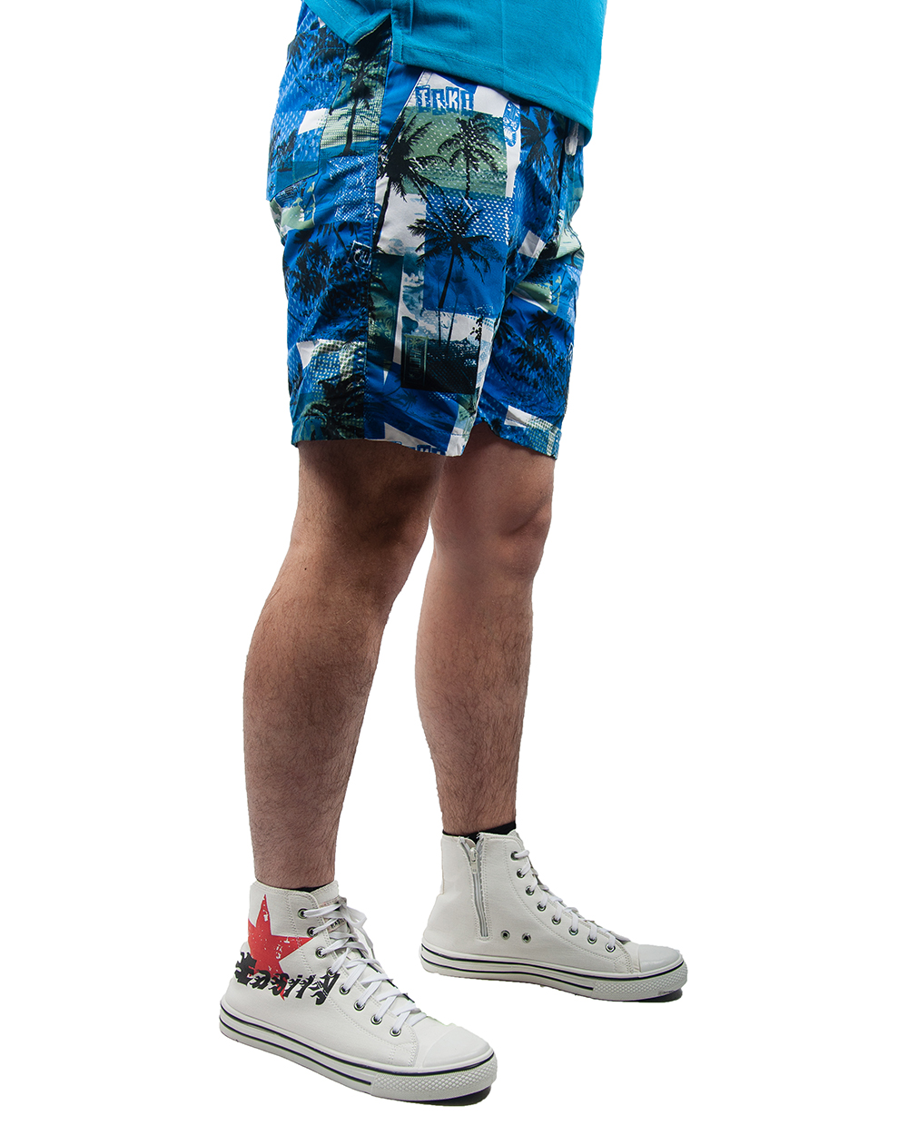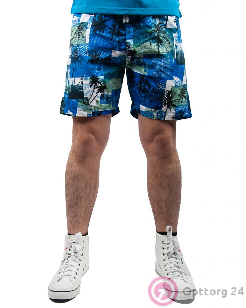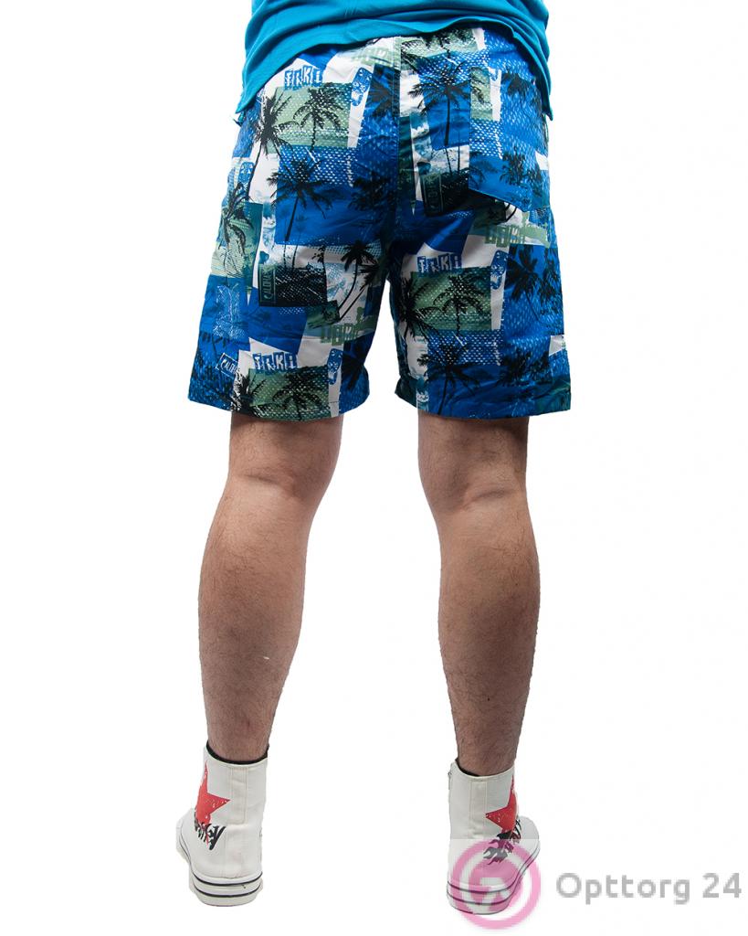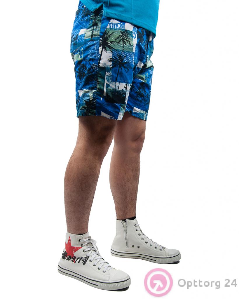 Шорты мужские бело-синие с гавайскими пальмами оптом