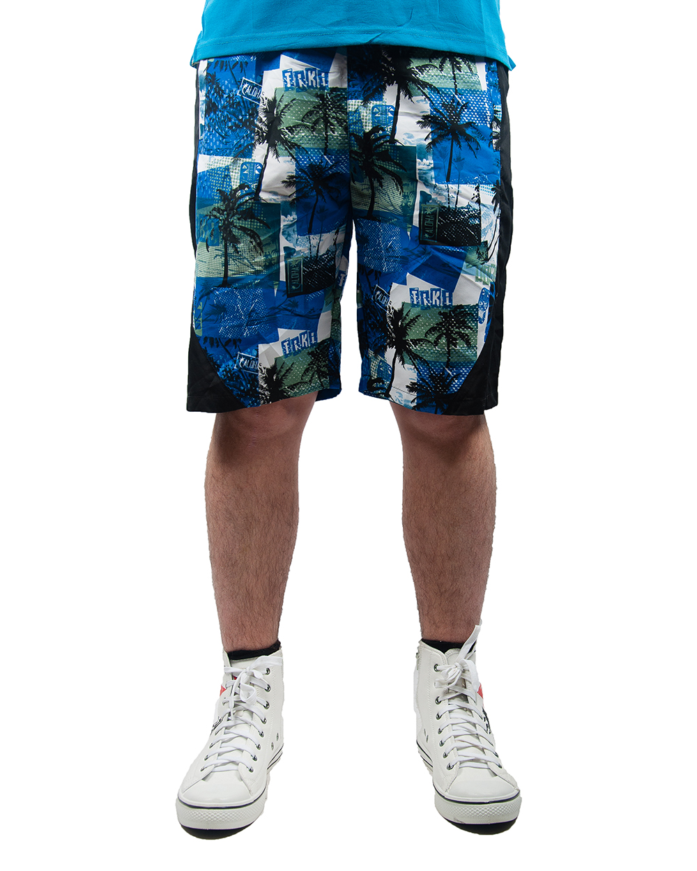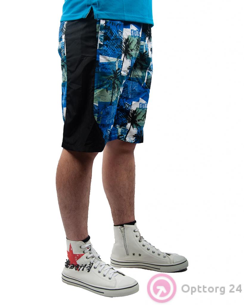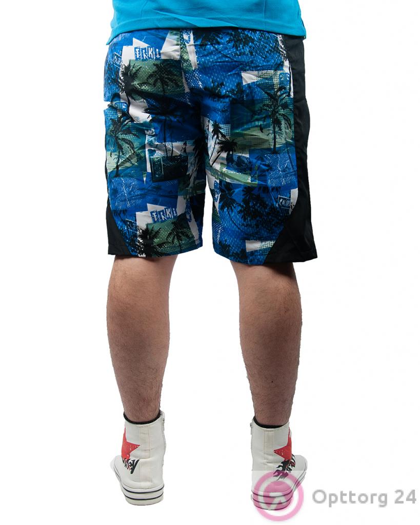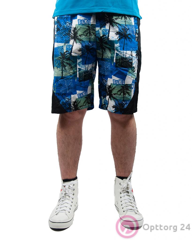Шорты мужские бело-синие с пальмами и черными вставками оптом