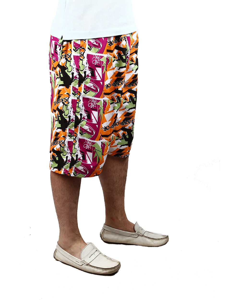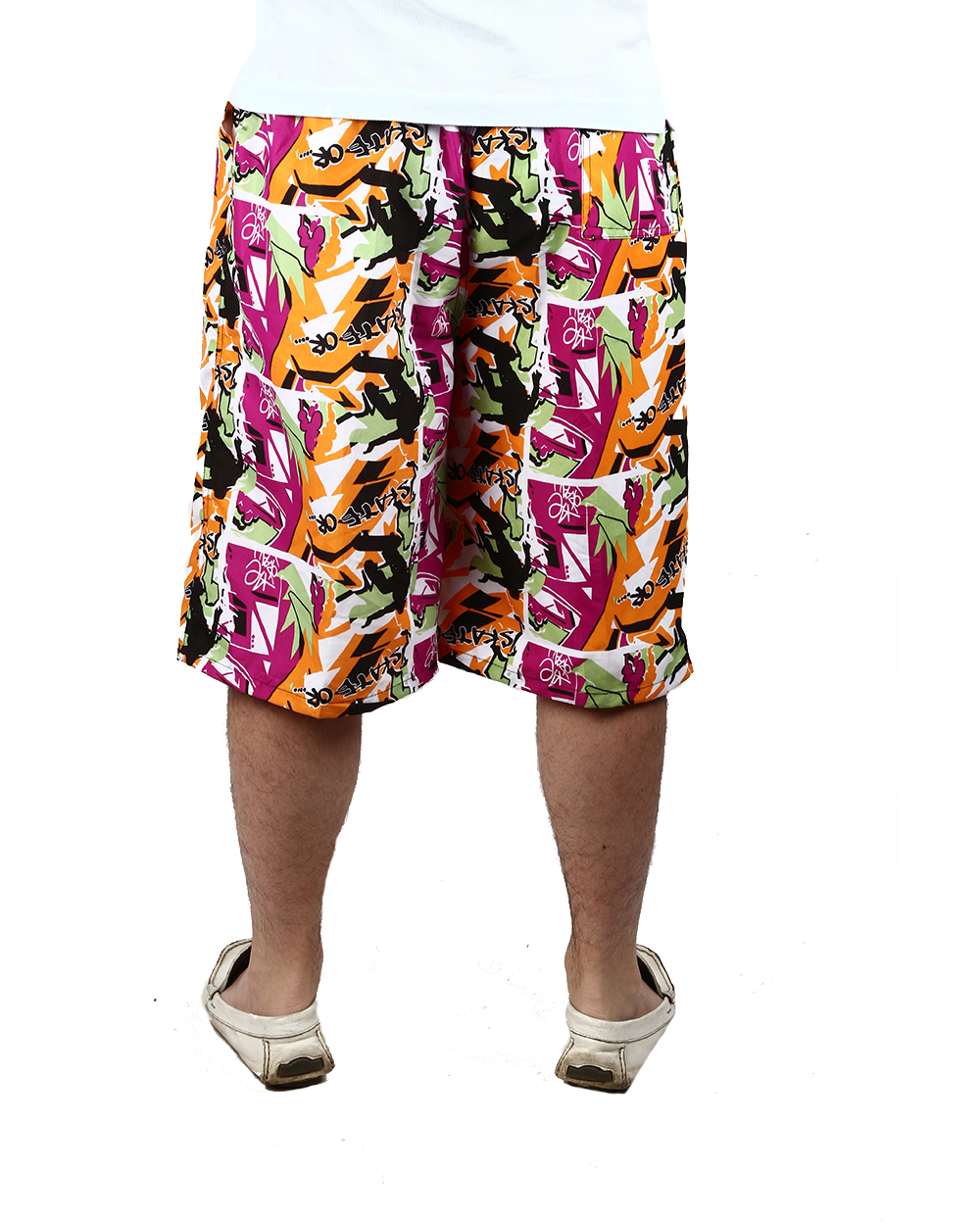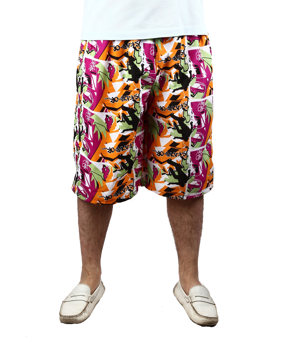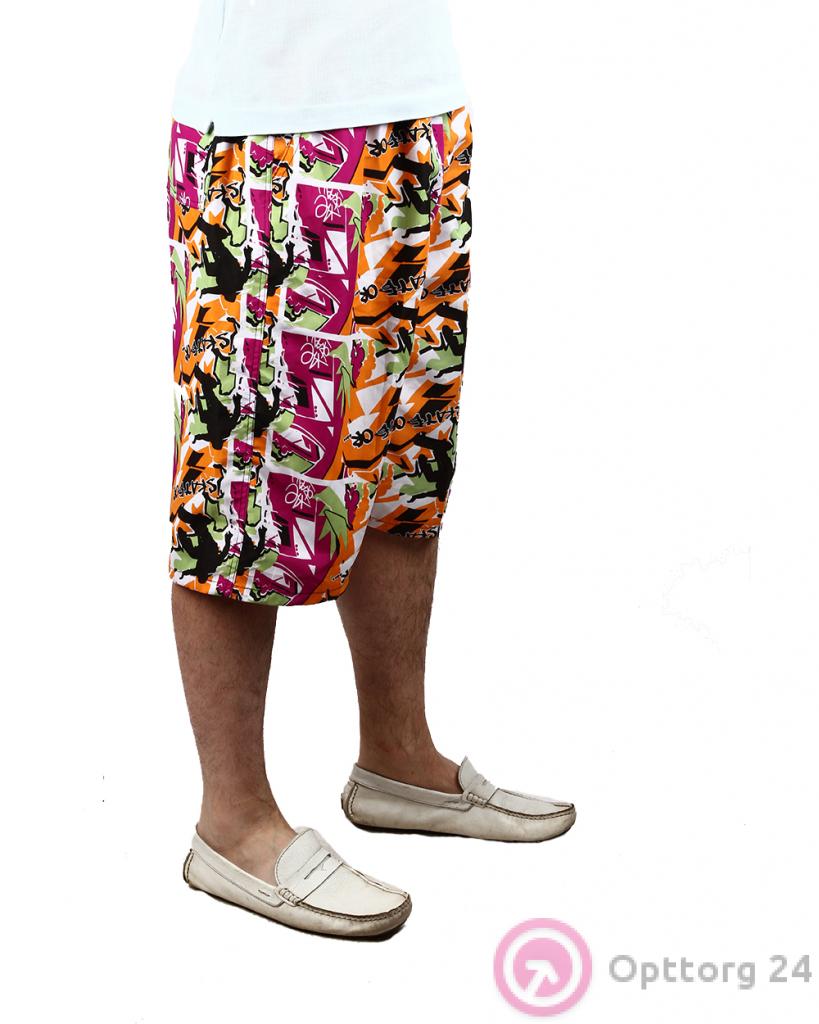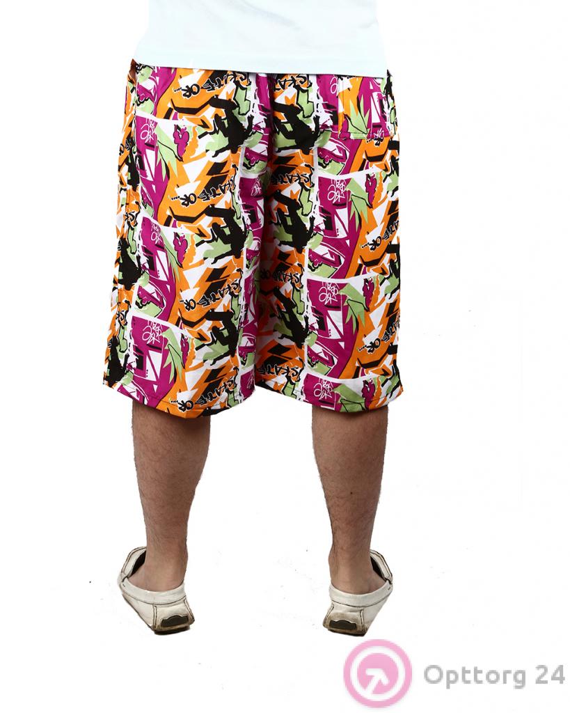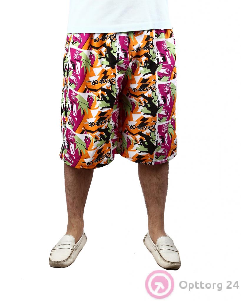 Шорты мужские оранжевого цвета с ярким принтом оптом