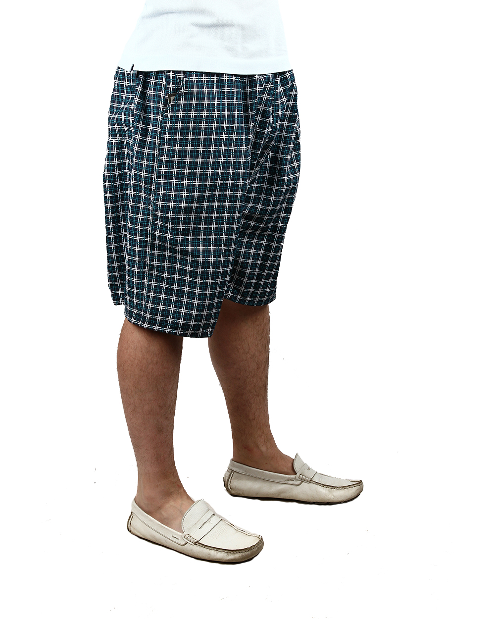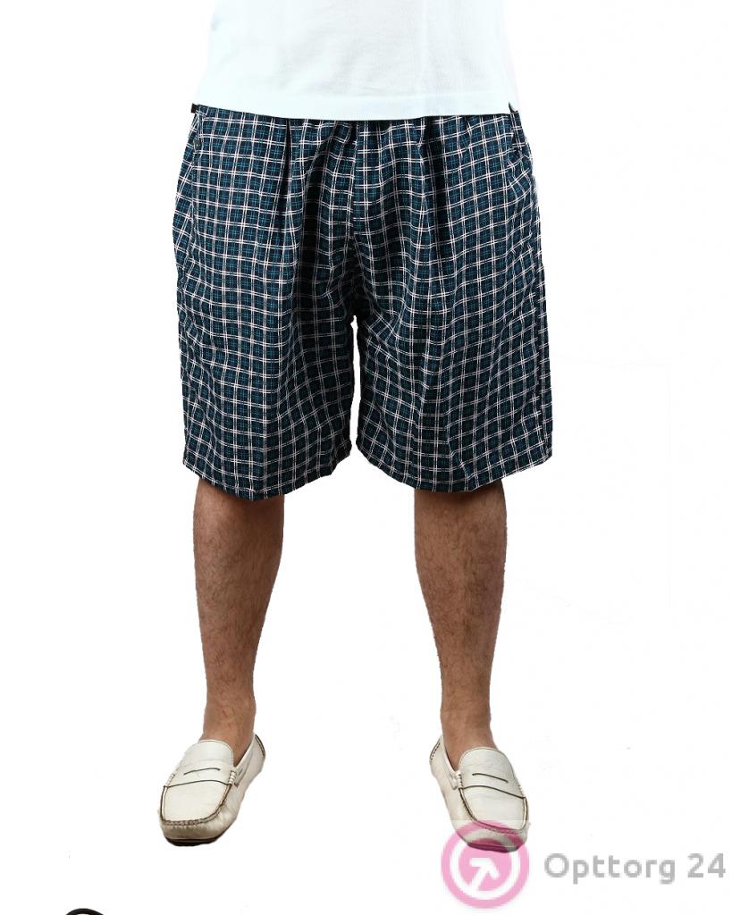 Шорты мужские сине-зеленого цвета в клетку оптом