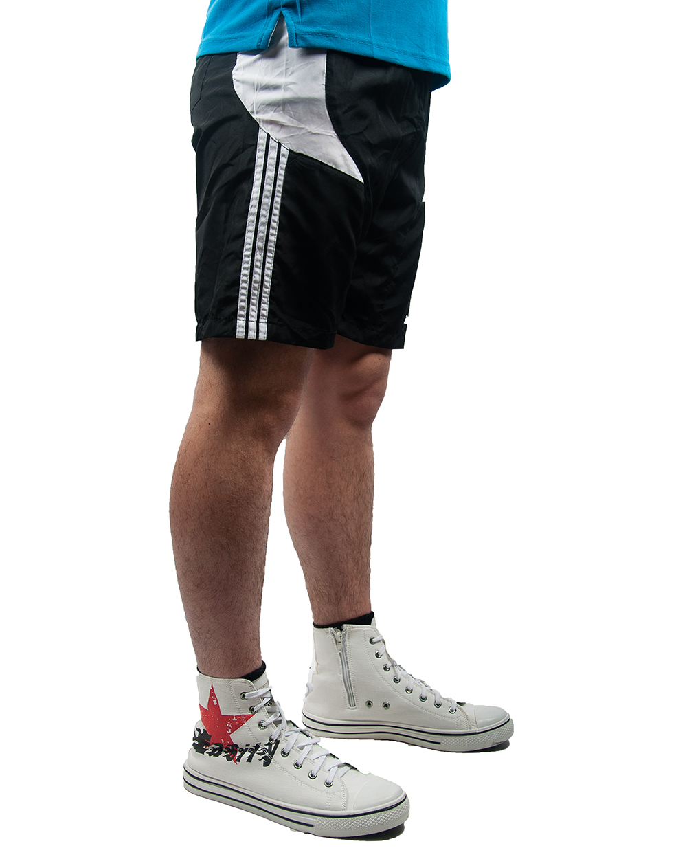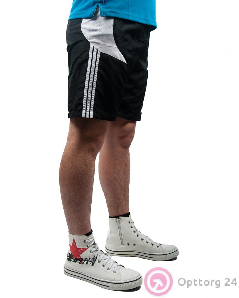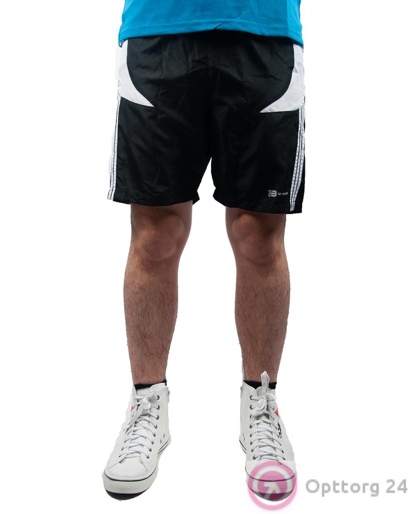 Шорты мужские спопртивные черные с белыми вставками и полосками оптом