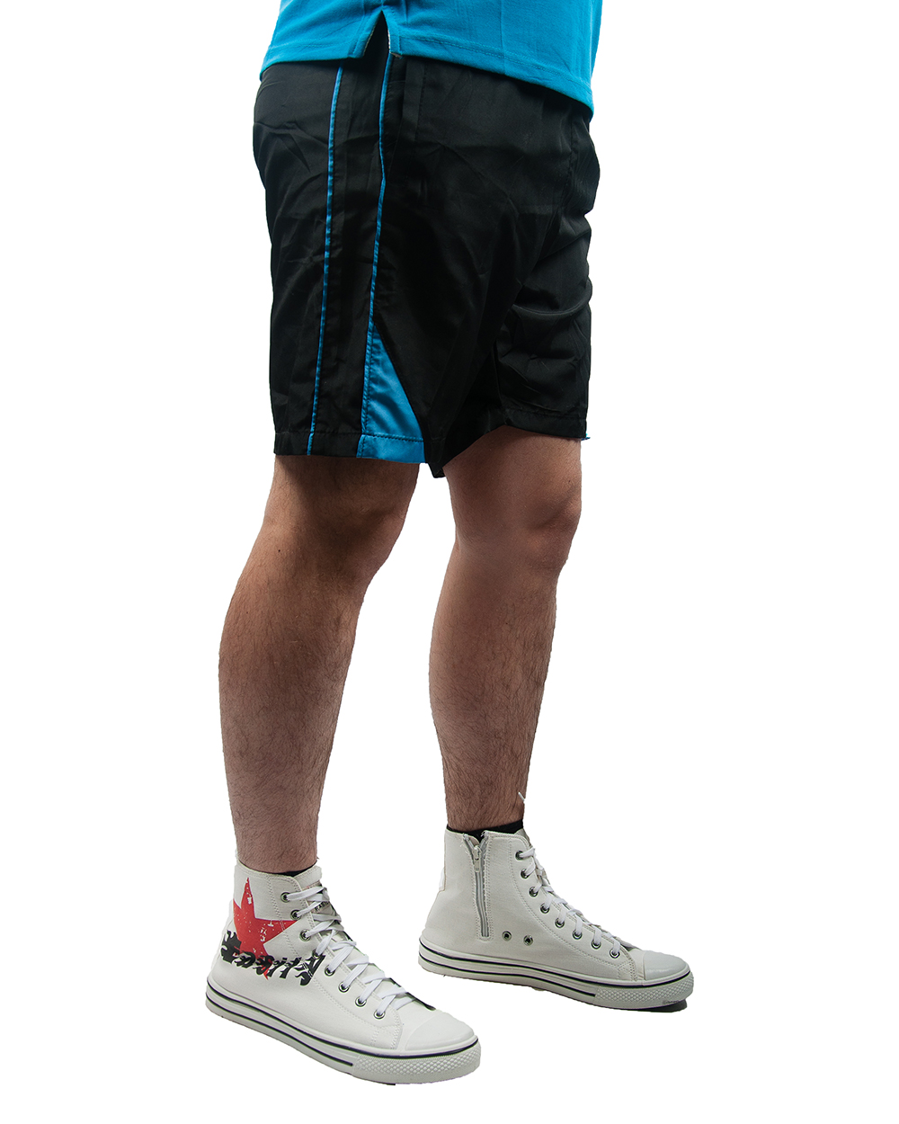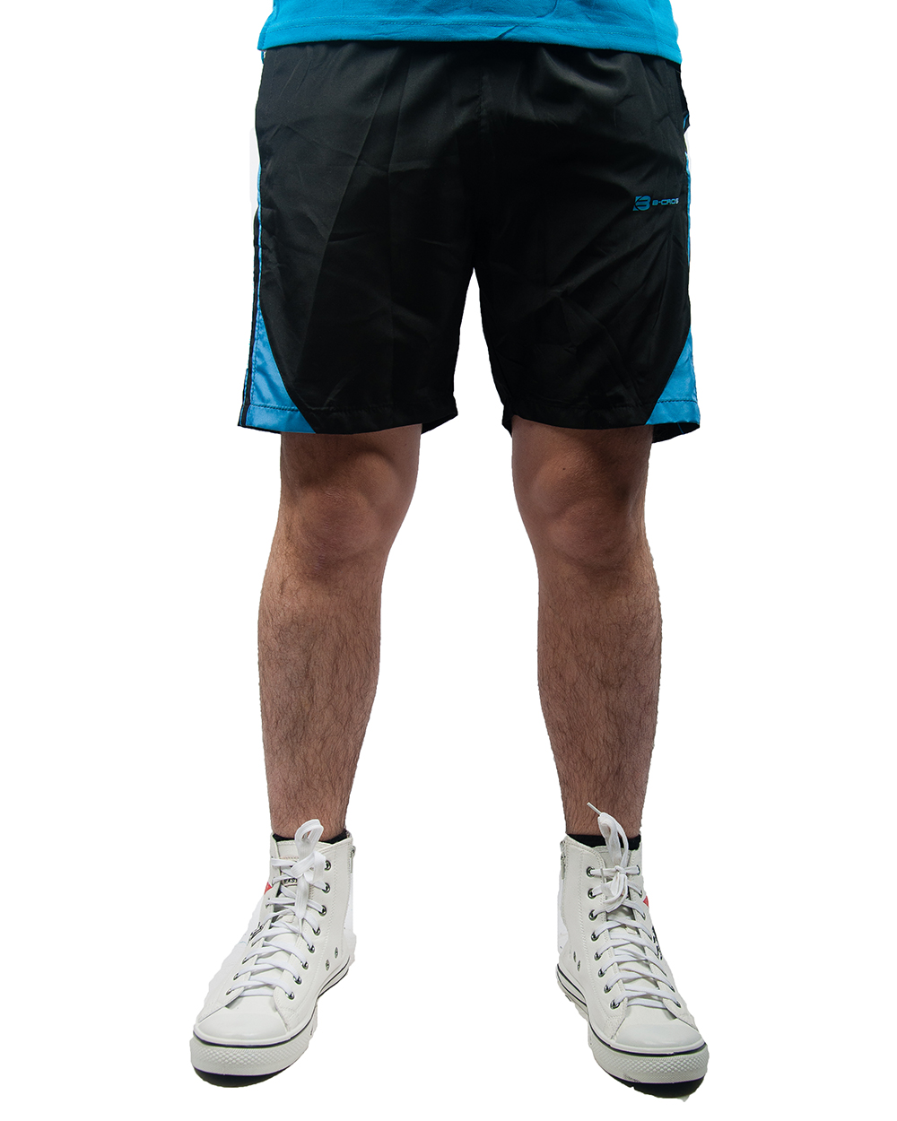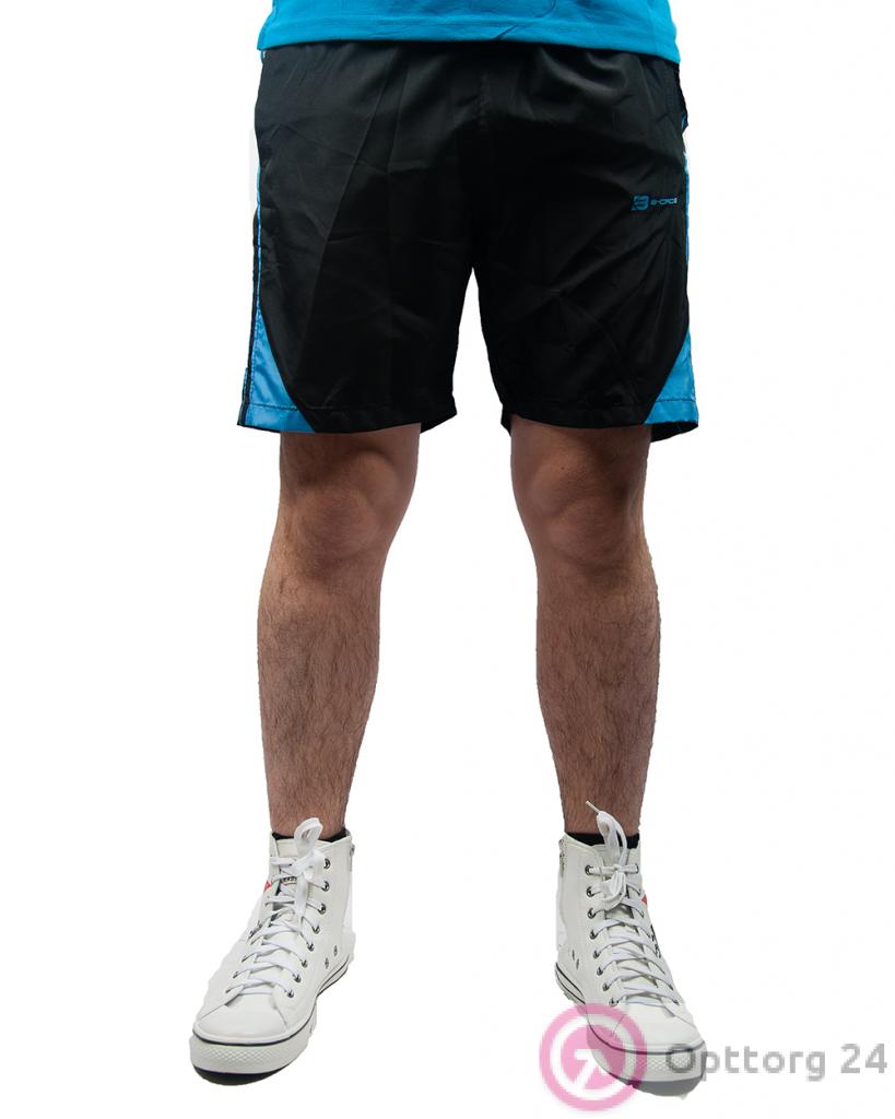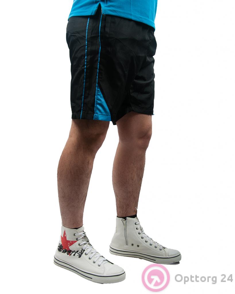 Шорты мужские спортивные черные с голубыми вставками оптом