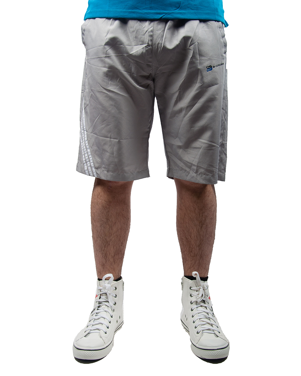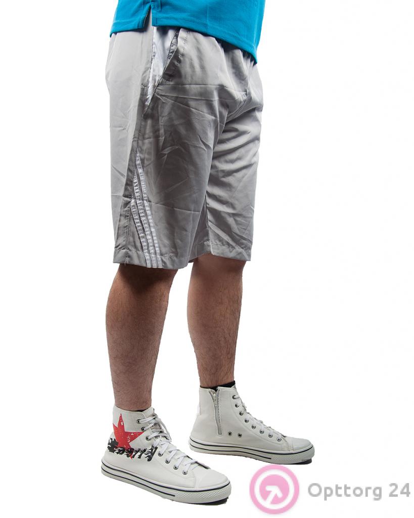Шорты мужские спортивные серые с белыми вставками оптом