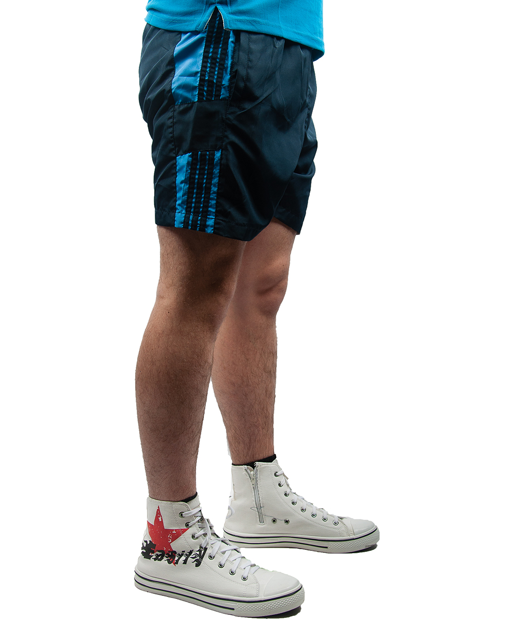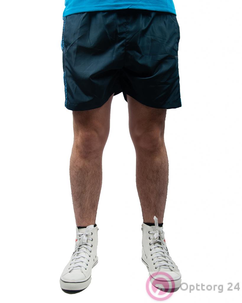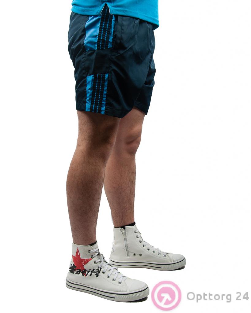 Шорты мужские спортивные сине-голубые с полосками оптом