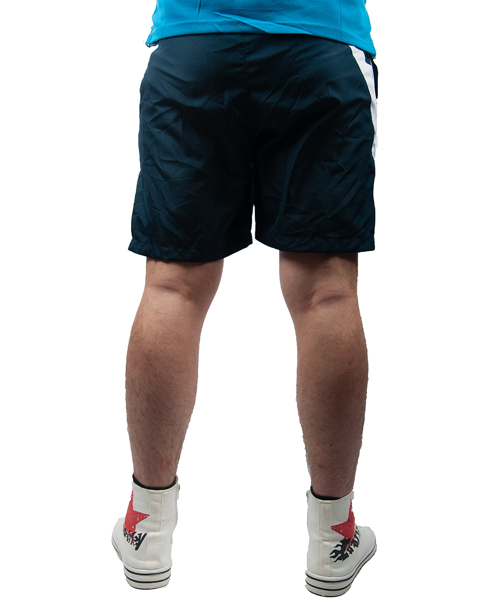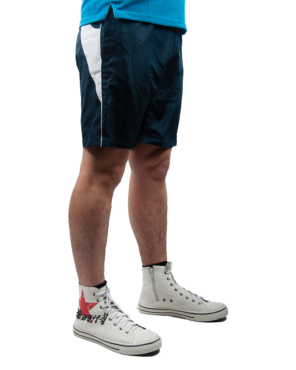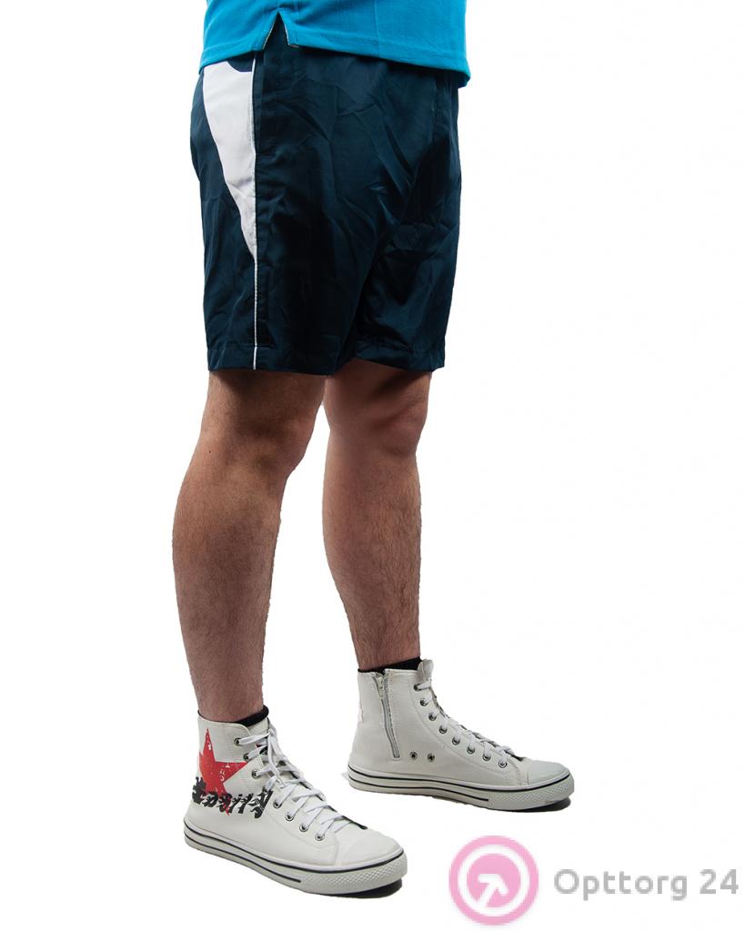 Шорты мужские спортивные темно-синие с белыми боковинами оптом
