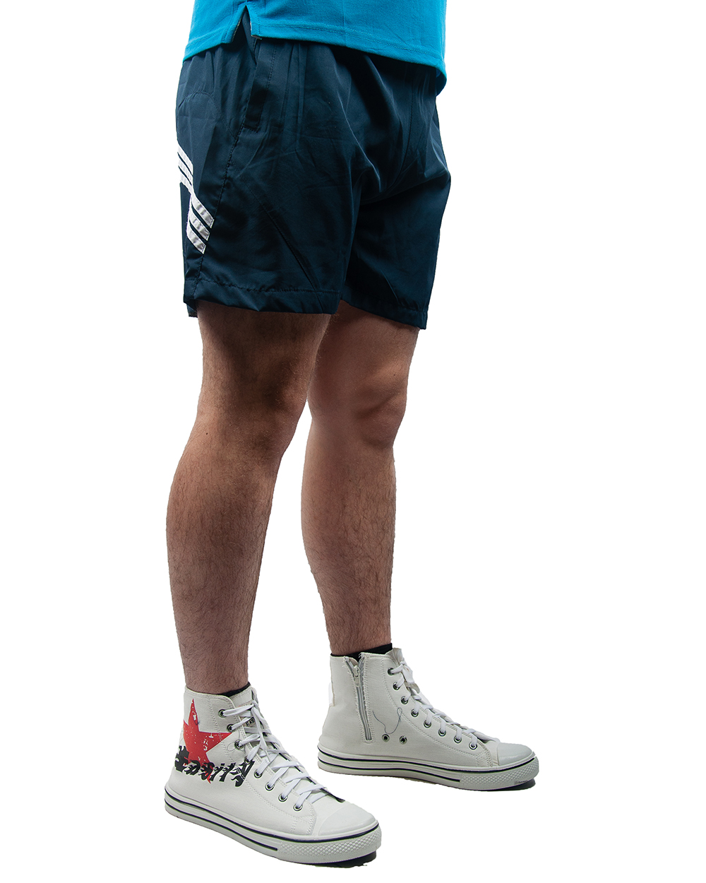 Шорты мужские спортивные темно-синие с белыми полосочками оптом