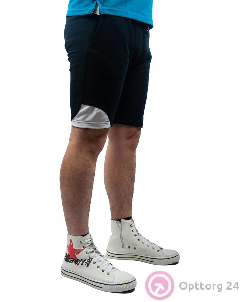 Шорты мужские трикотажные черные с белыми вставками оптом