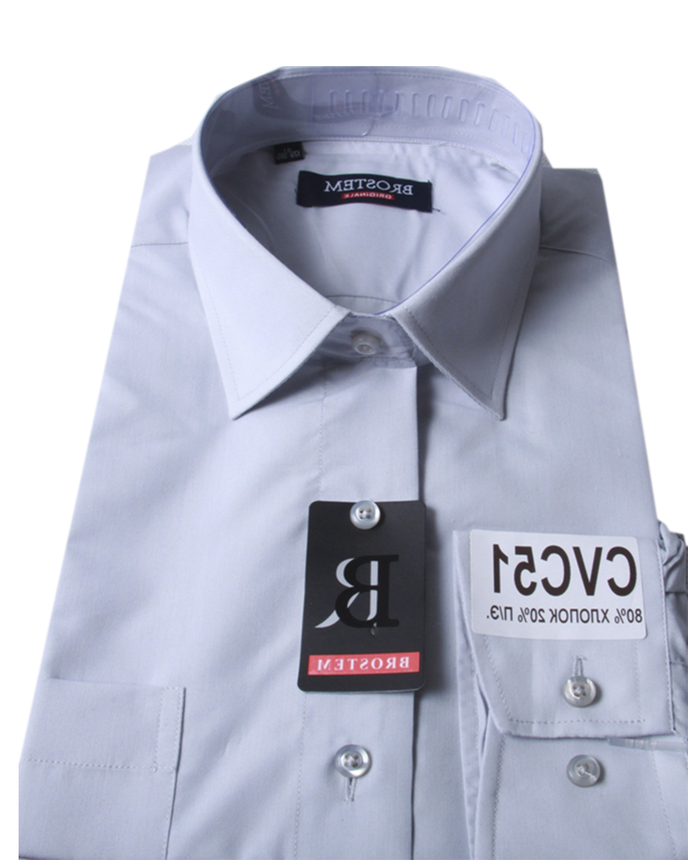 Сорочка мужская белого цвета с длинным рукавом CVC51 оптом