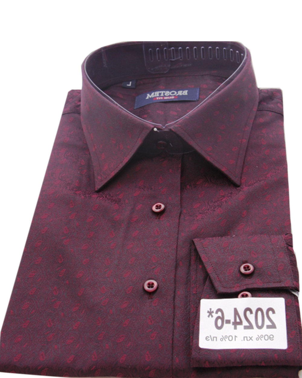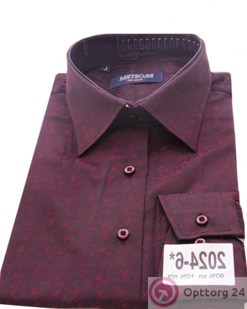 Сорочка мужская бордового цвета с принтом без кармана оптом