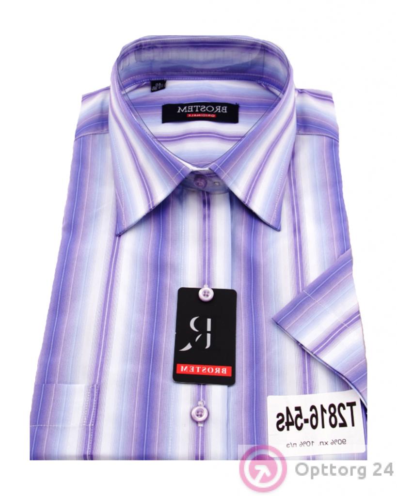 Сорочка мужская фиолетовая в голубую полоску оптом