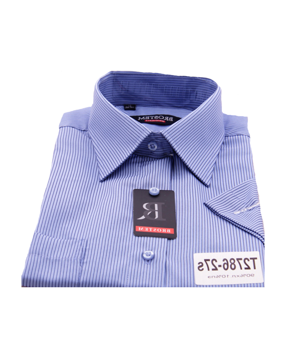 Прекрасная хлопковая рубашка голубого цвета в синюю полоску отлично дополнит гардероб делового мужчины. Модель выполненная из натурального материала, она идеально сидит на теле.
