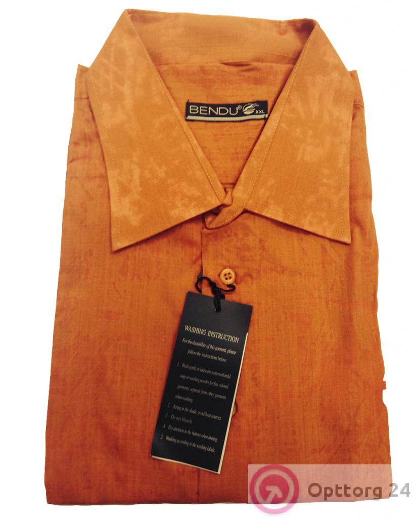 Стильная яркая мужская рубашка ранжевого цвета с пуговицами в тон. Классический отложной воротник.