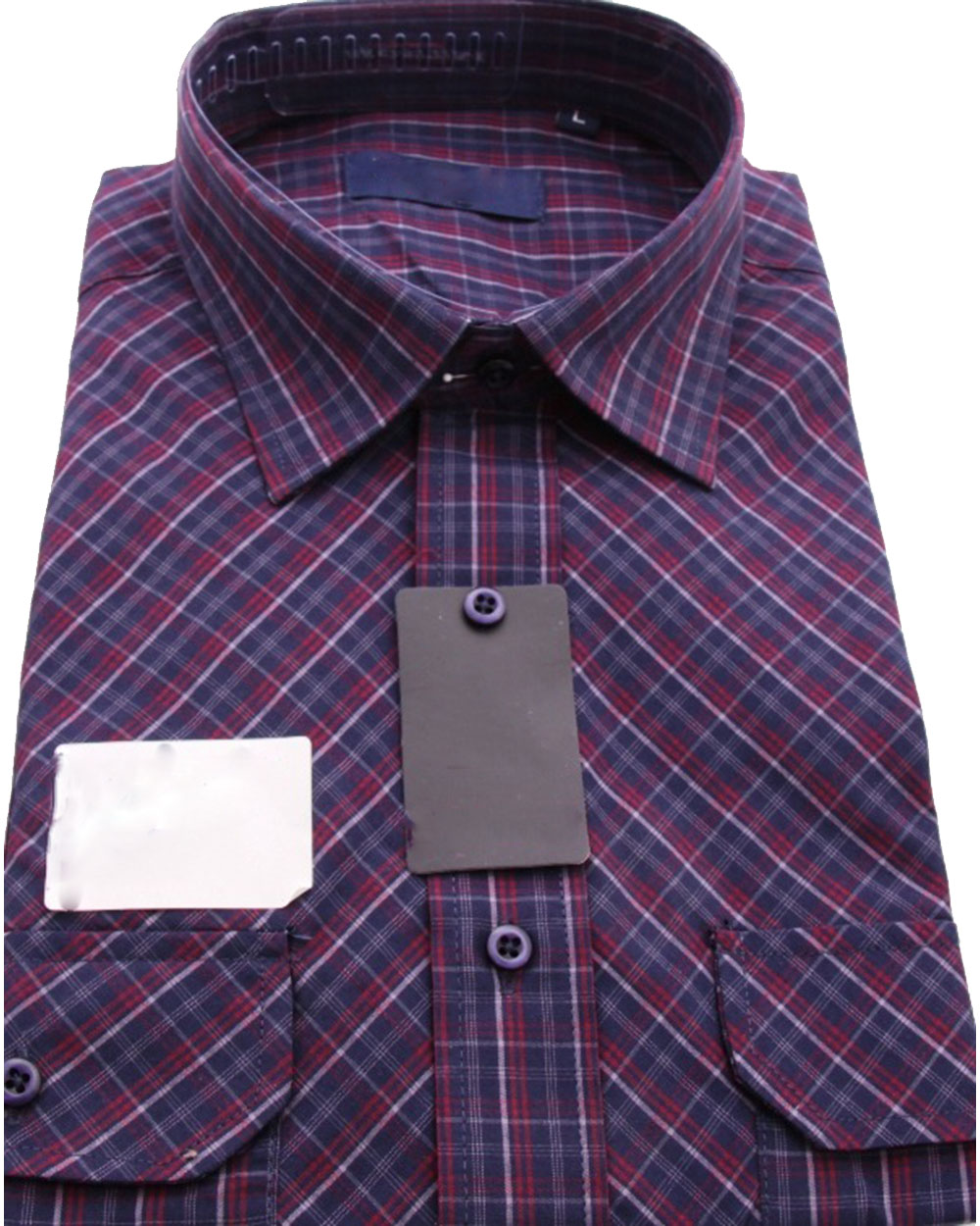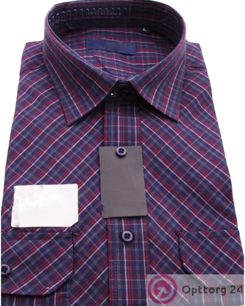 Сорочка мужская приталенная сине-красная в клетку оптом