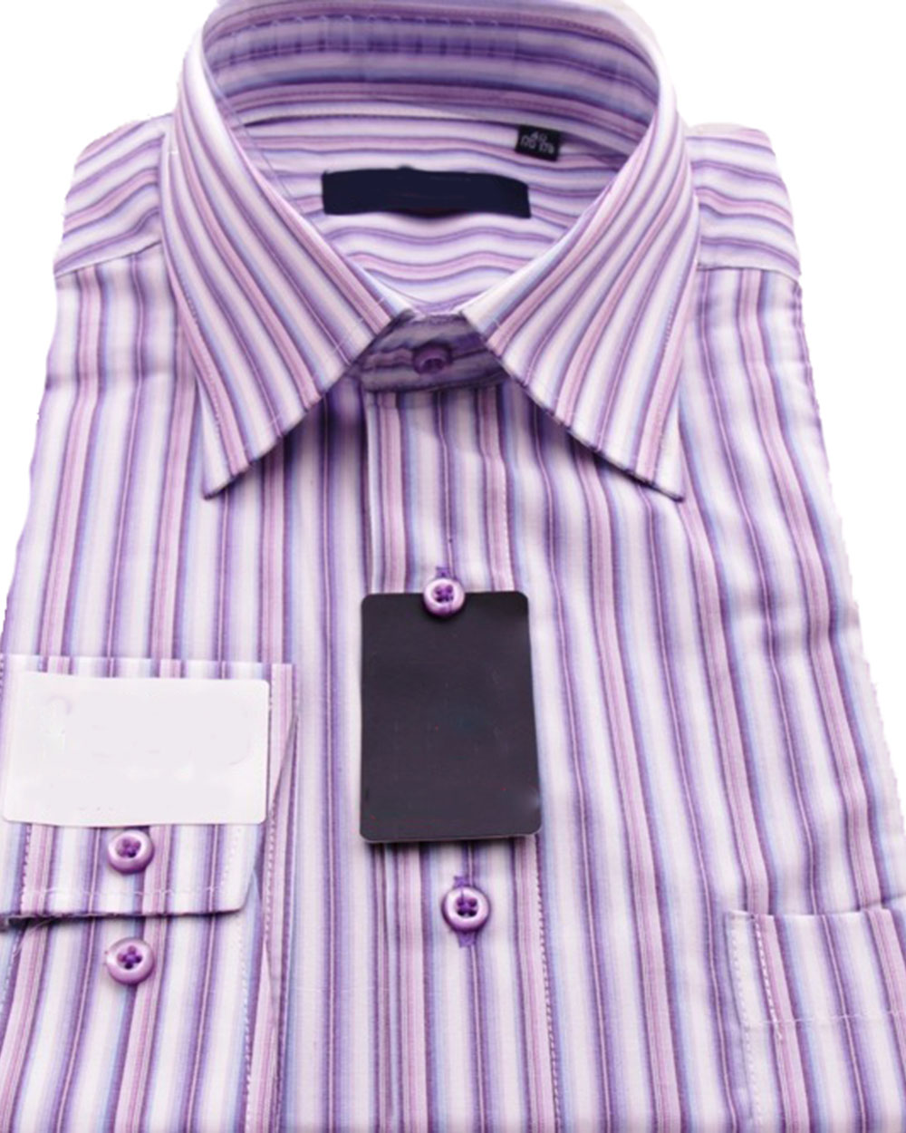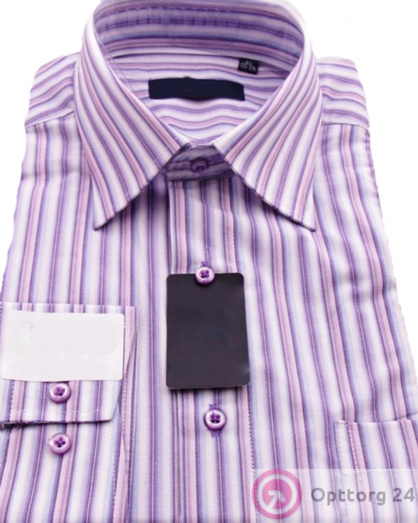 Сорочка мужская с длинным рукавом бело-фиолетовая в полоску оптом