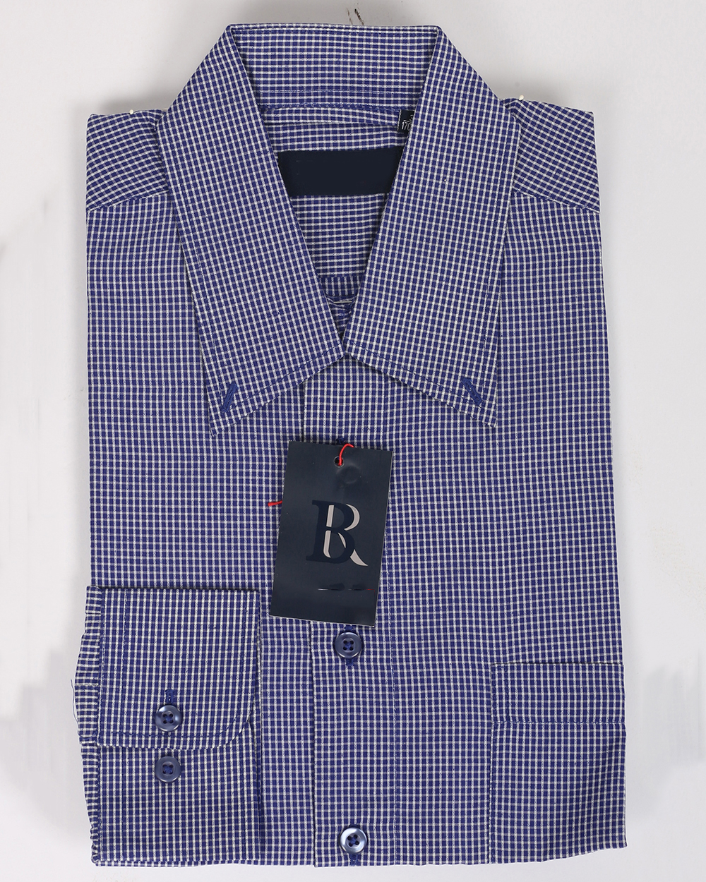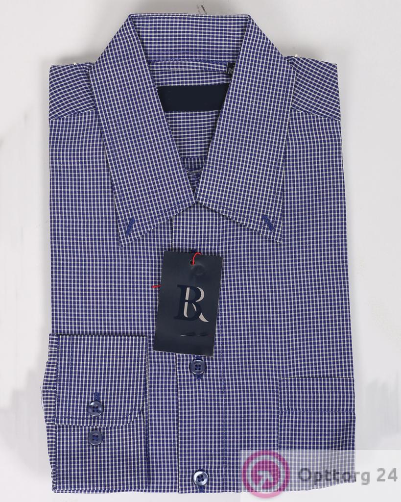 Сорочка мужская с длинным рукавом бело-синяя в клетку оптом