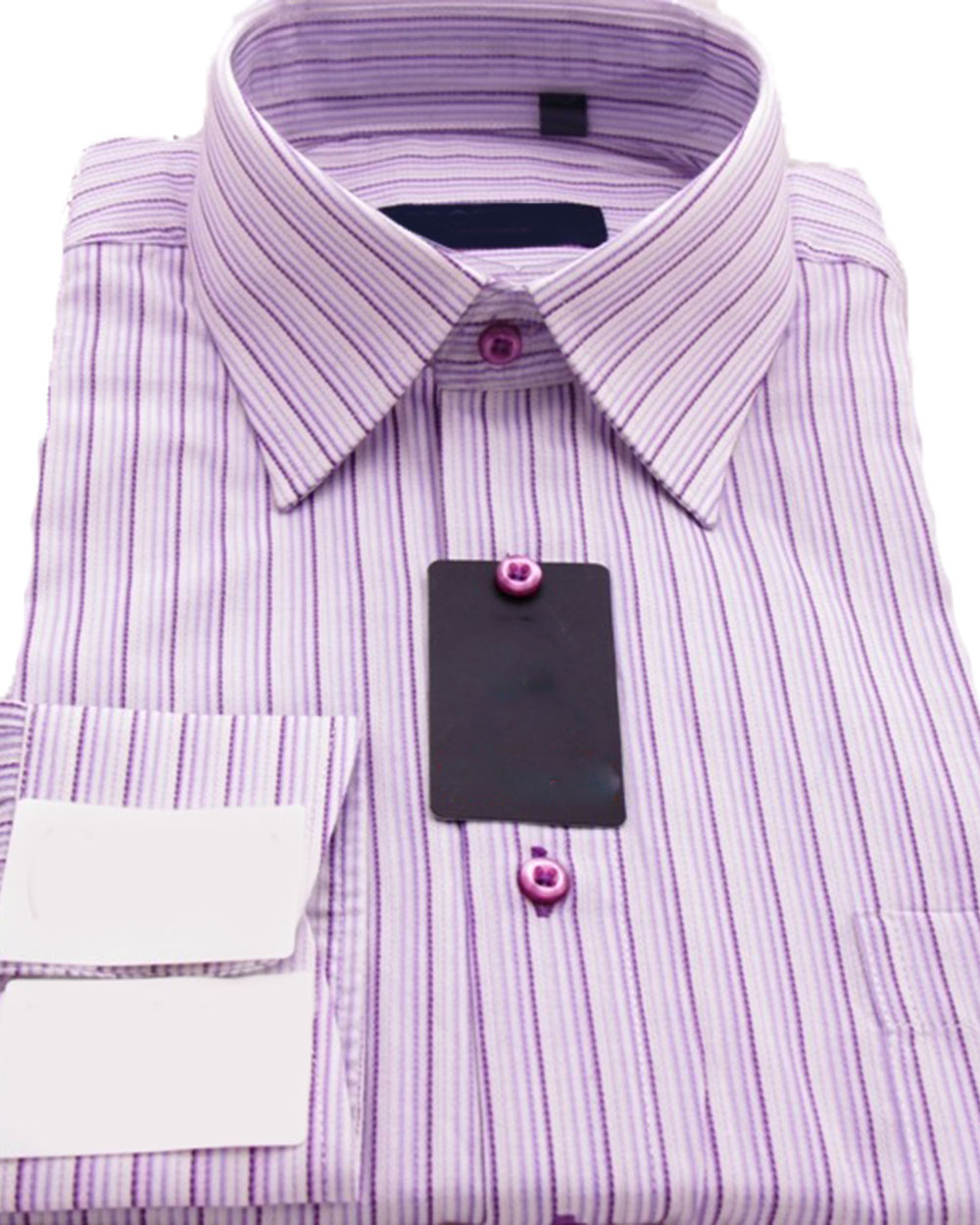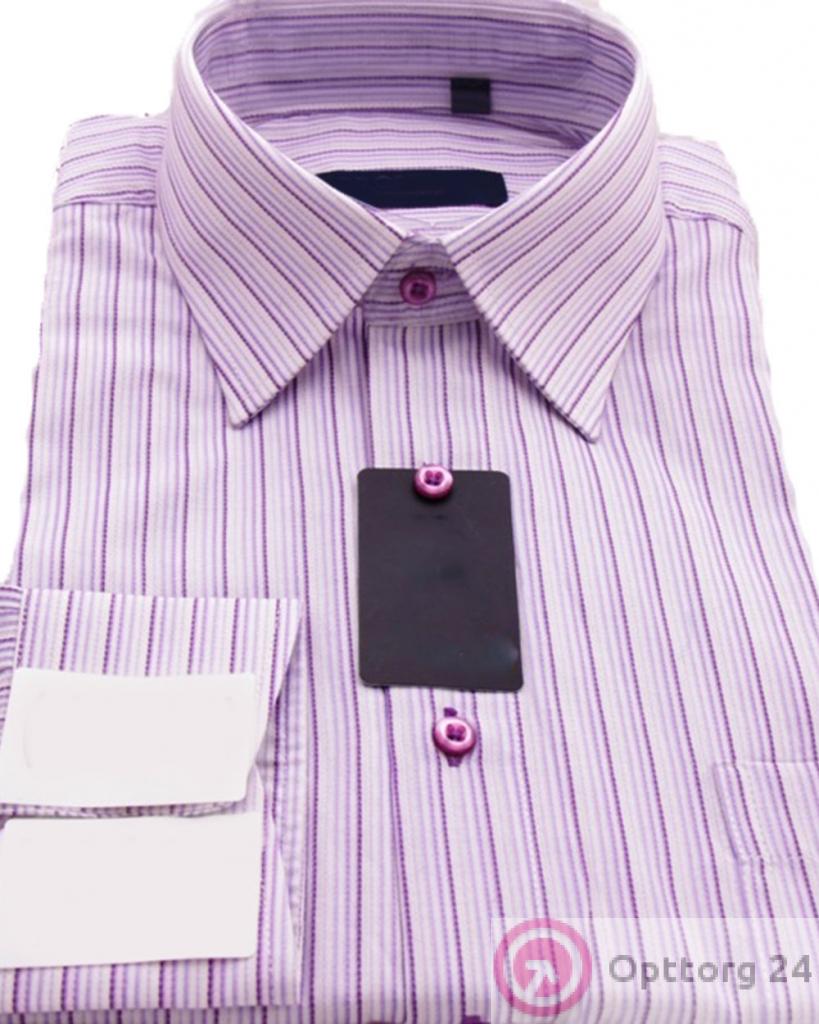 Сорочка мужская с длинным рукавом бело-сиреневая в полоску оптом