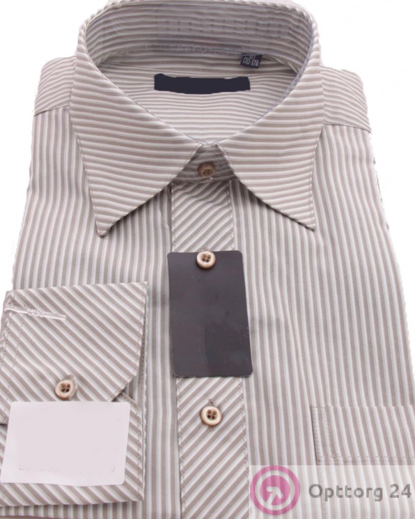 Сорочка мужская с длинным рукавом кофейная в полоску оптом