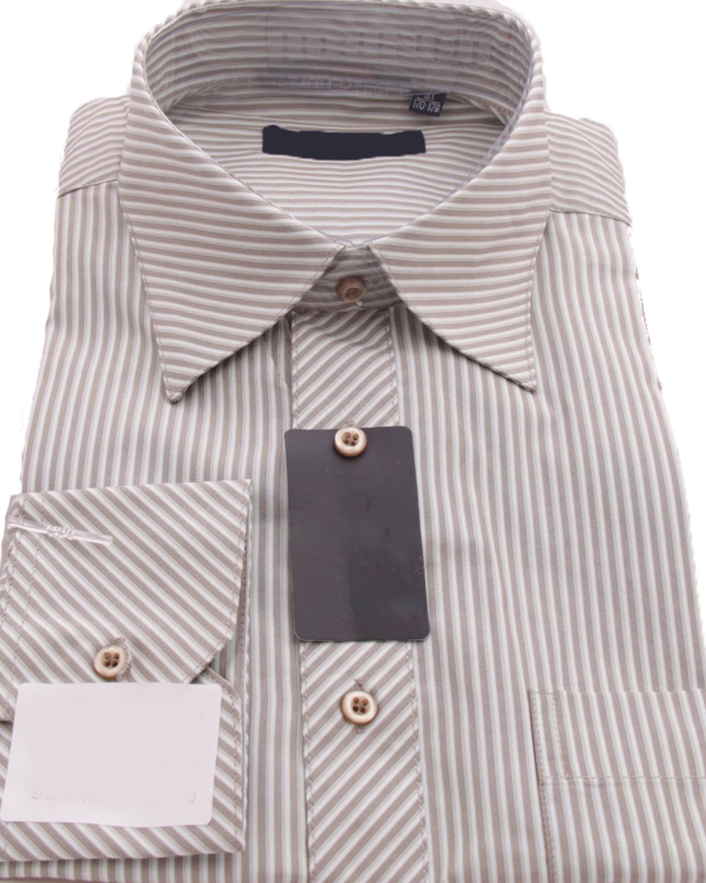 Сорочка классического покроя нежного кофейного цвета отличается необычными белыми полосками и прямым силуэтом. Эта модель прекрасно впишется в гардероб современного мужчины.